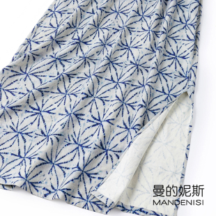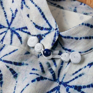 桑蚕丝古朴扎染风改良旗袍 开叉连衣裙 复古国风真丝绢丝立领修身