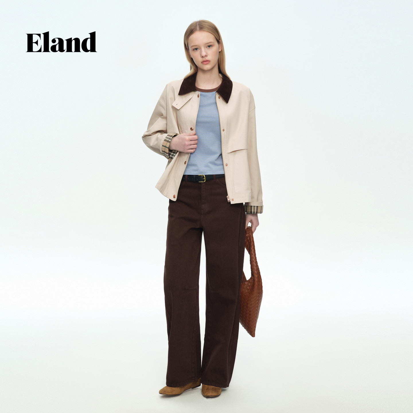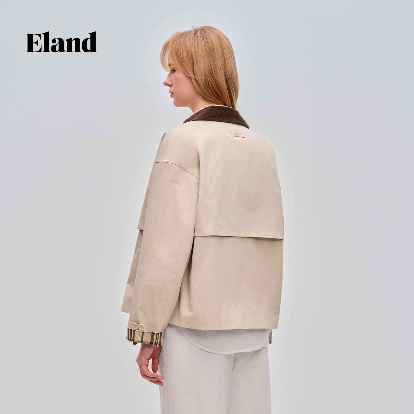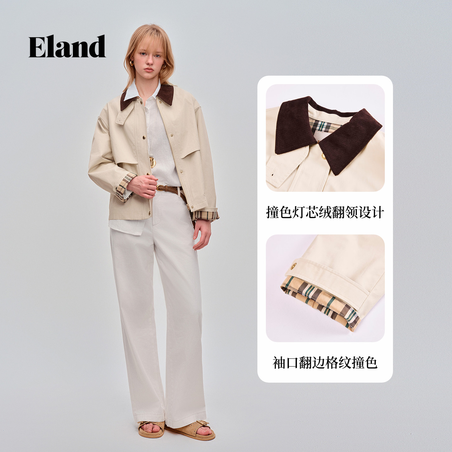 外套2026春夏新款 Eland衣恋短外套女单排扣翻领长袖 100%棉