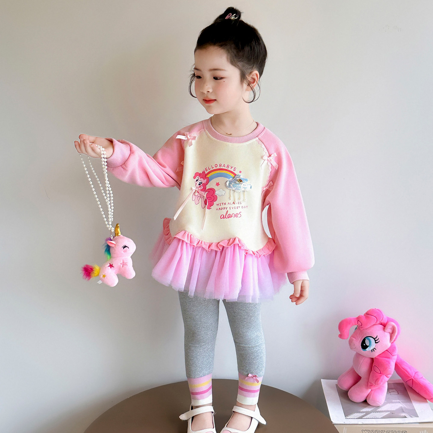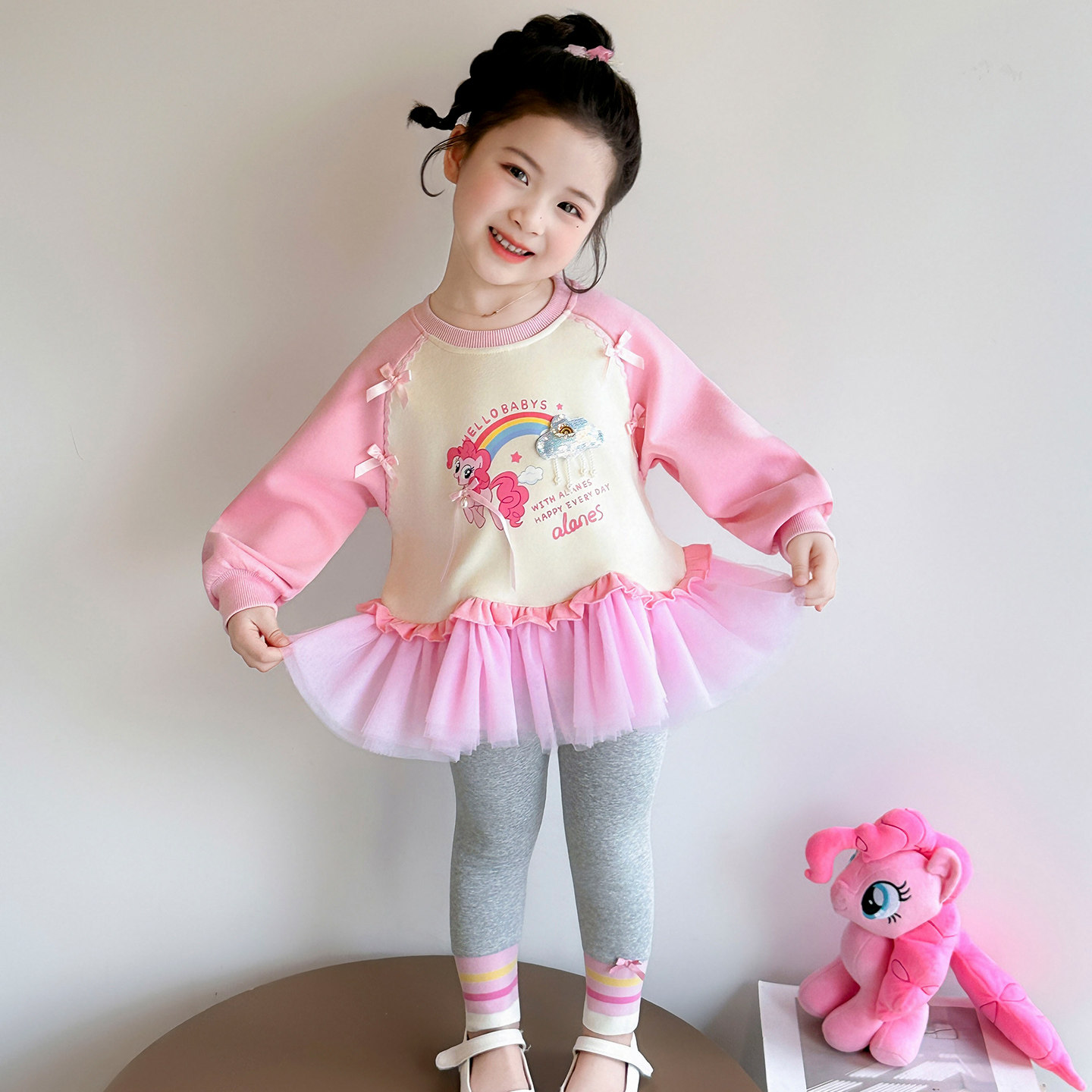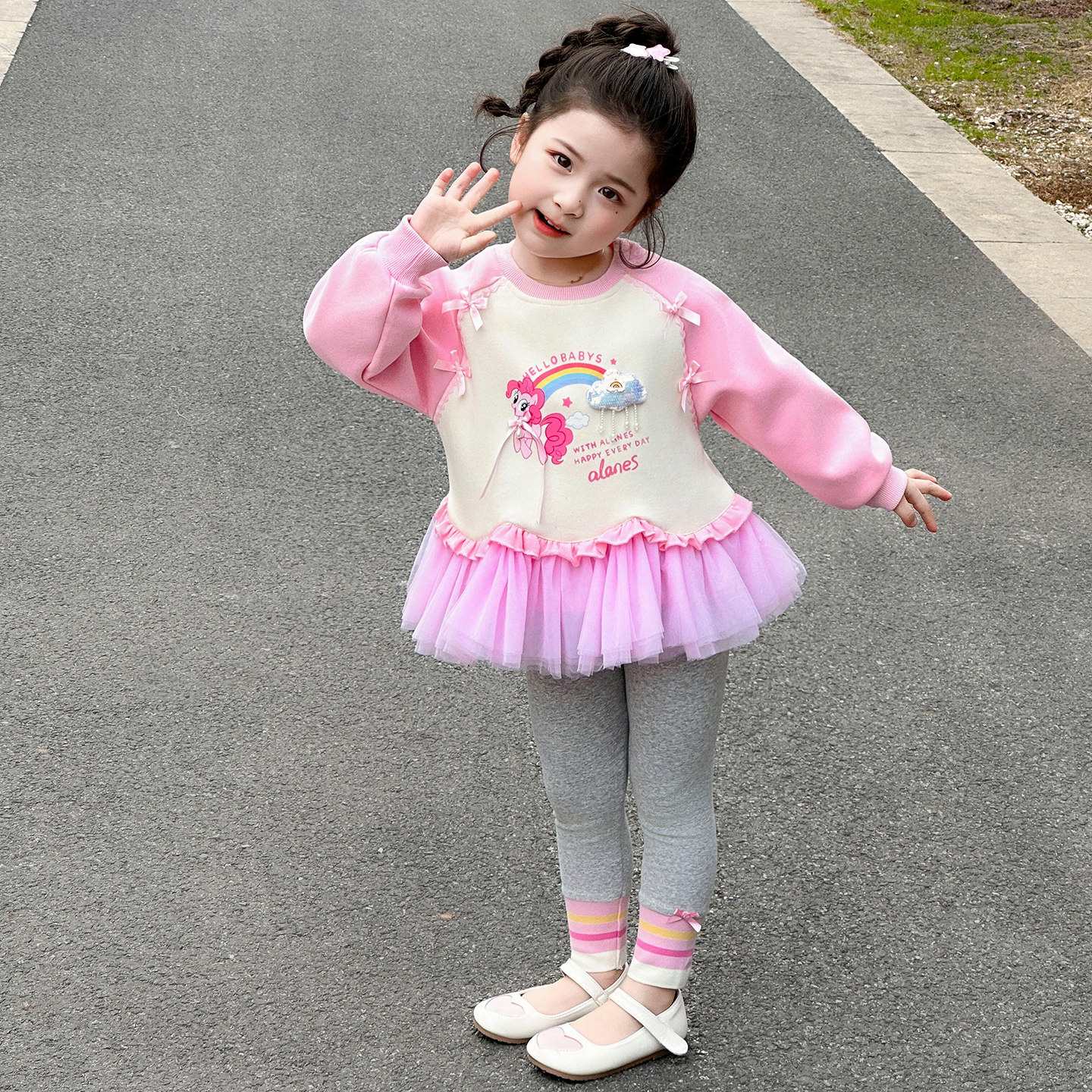 女孩宝宝打底裤 2026新款 两件套洋气 女童小马宝莉卫衣纱裙套装 正版