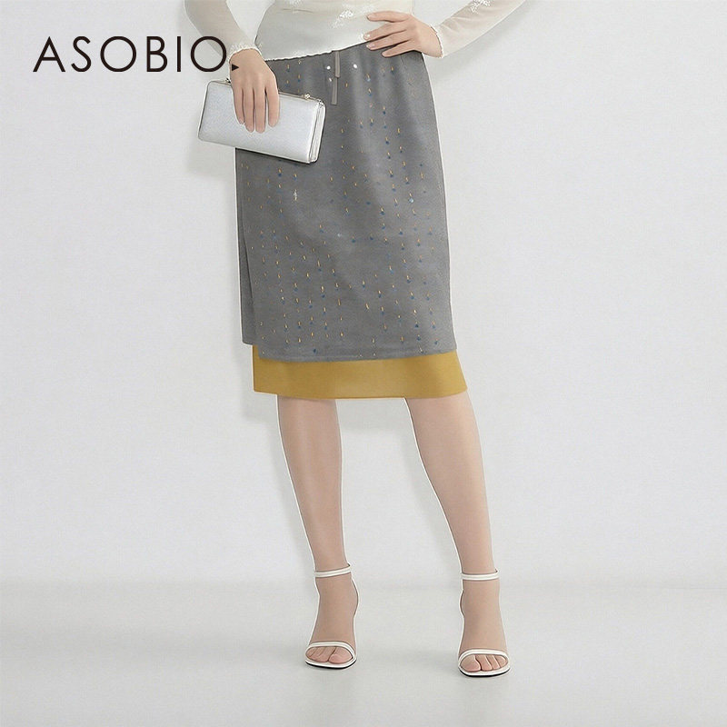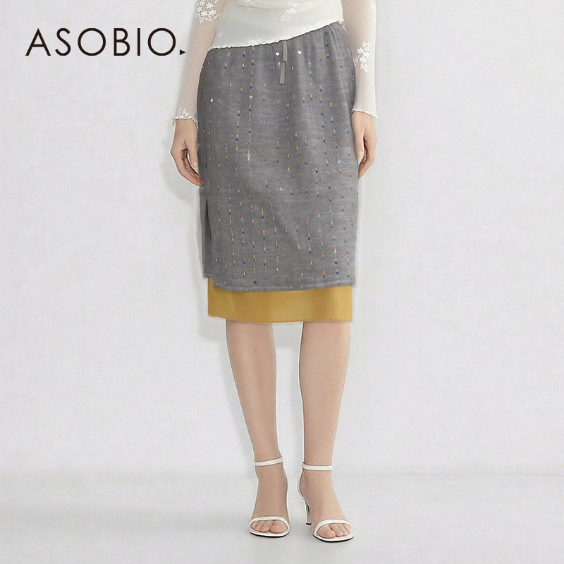 Asobio 浪漫叠搭时髦亮片双层撞色半身裙女047 2026年春夏新款