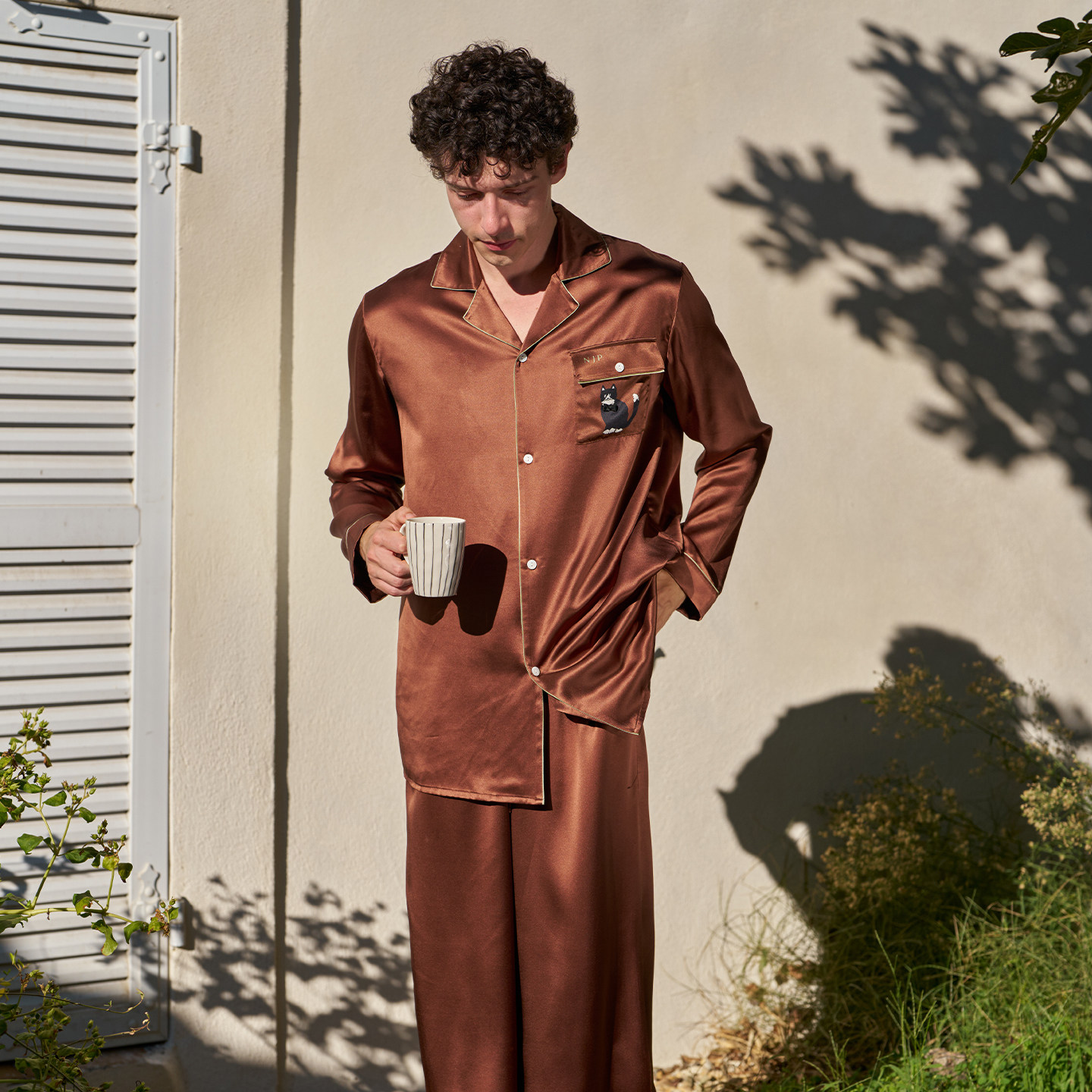Milo系列奶牛小猫长袖 Pajama真丝睡衣男款 桑蚕丝家居服 Just Not