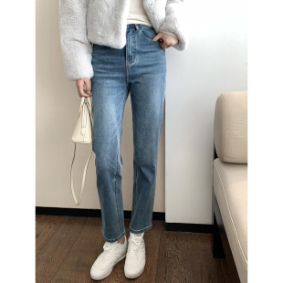 新品 现货 小个子秋冬复古水洗蓝高腰做旧显瘦9分牛仔裤 经典 AHY
