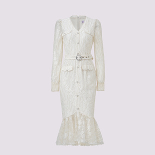 MAXRIENY精致浪漫蕾丝连衣裙鱼尾荷叶边长裙裙子 奥莱