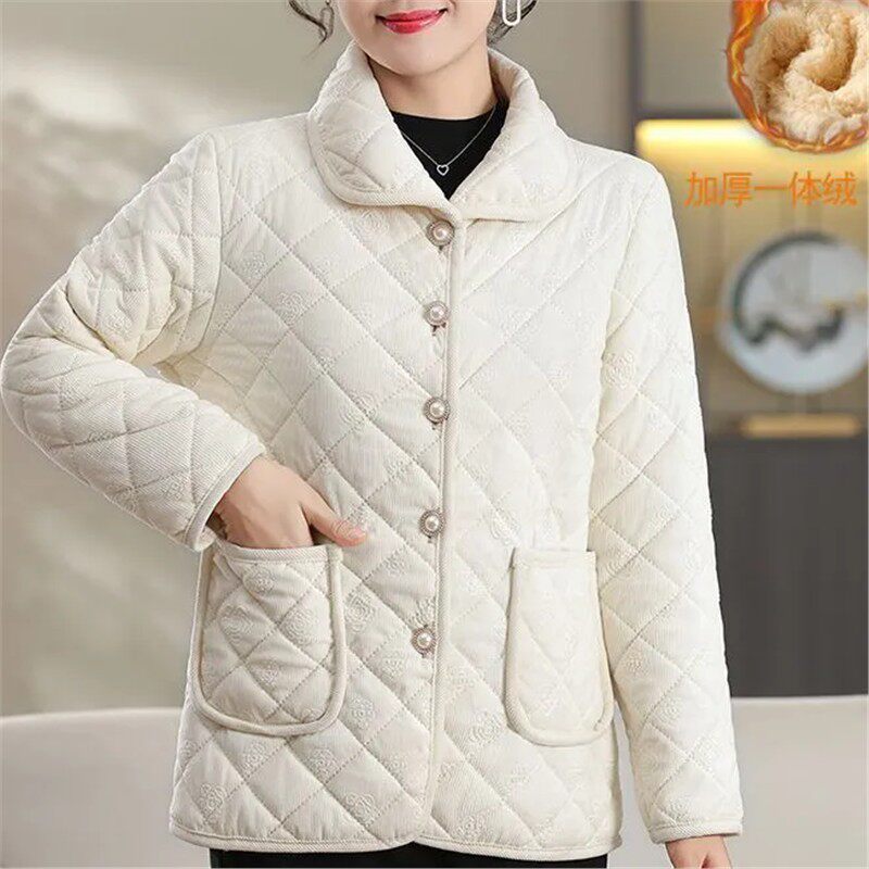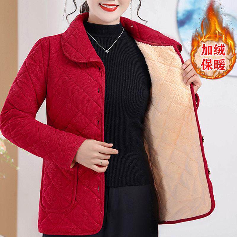 2025保暖新款 中老年妈妈休闲宽松外套女士棉衣加绒棉服短棉袄 短款