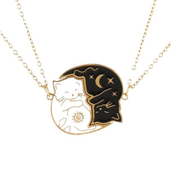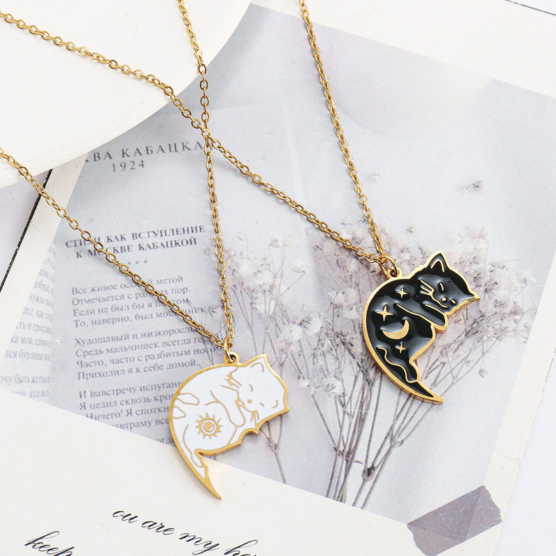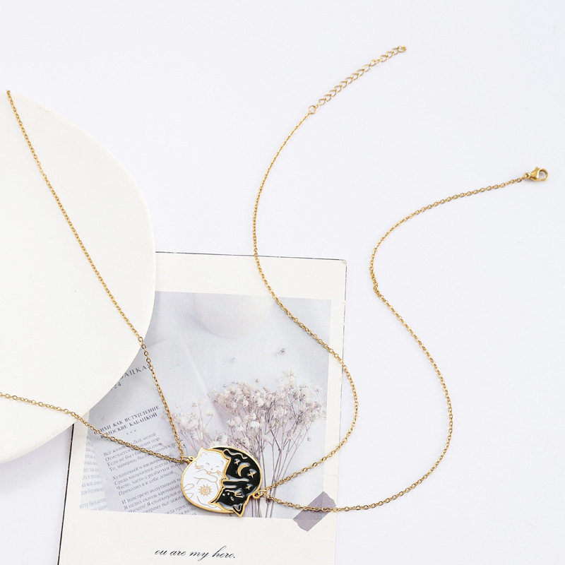 二人卡通太阳月亮猫咪不锈钢项链情侣闺蜜一对高级感钛钢饰品套装