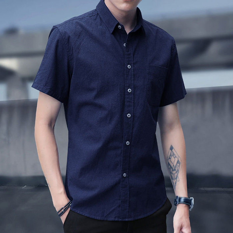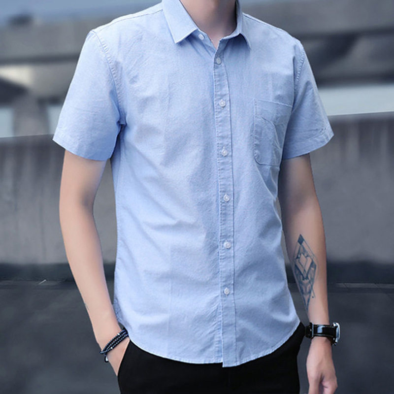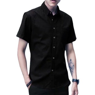 新款 男夏季 韩版 休闲上衣男士 牛津纺白色衬衣寸潮 短袖 五分袖 衬衫