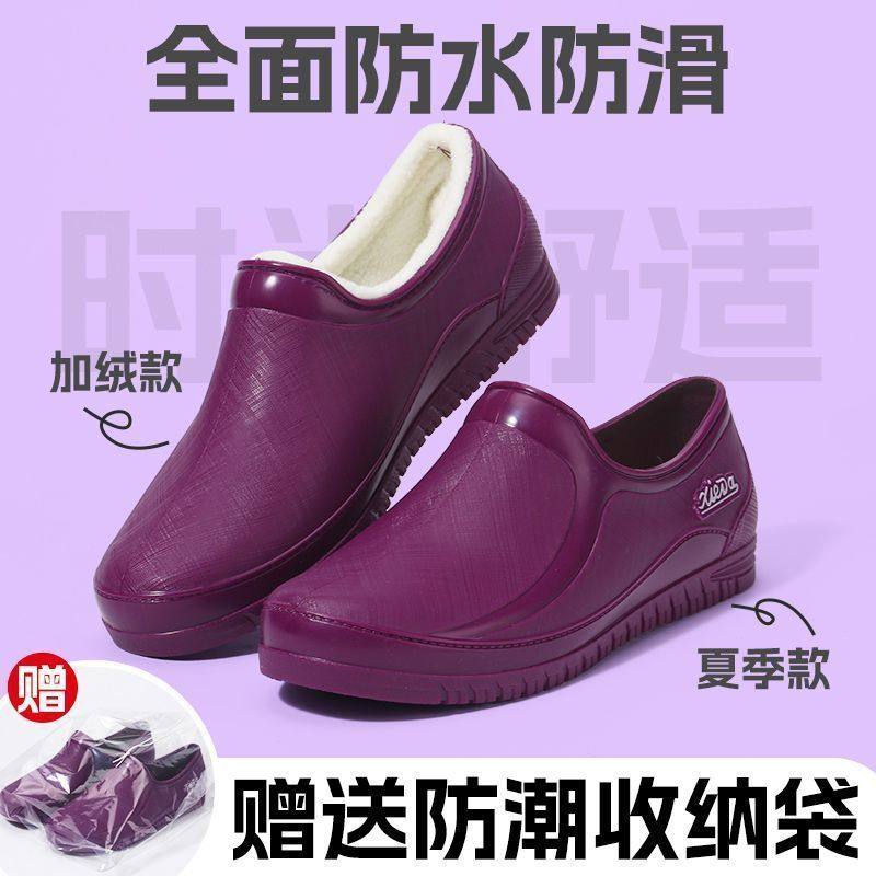 浅口雨鞋 加绒防寒厨房防滑防水耐磨女短筒雨靴 女低帮春秋女士雨鞋