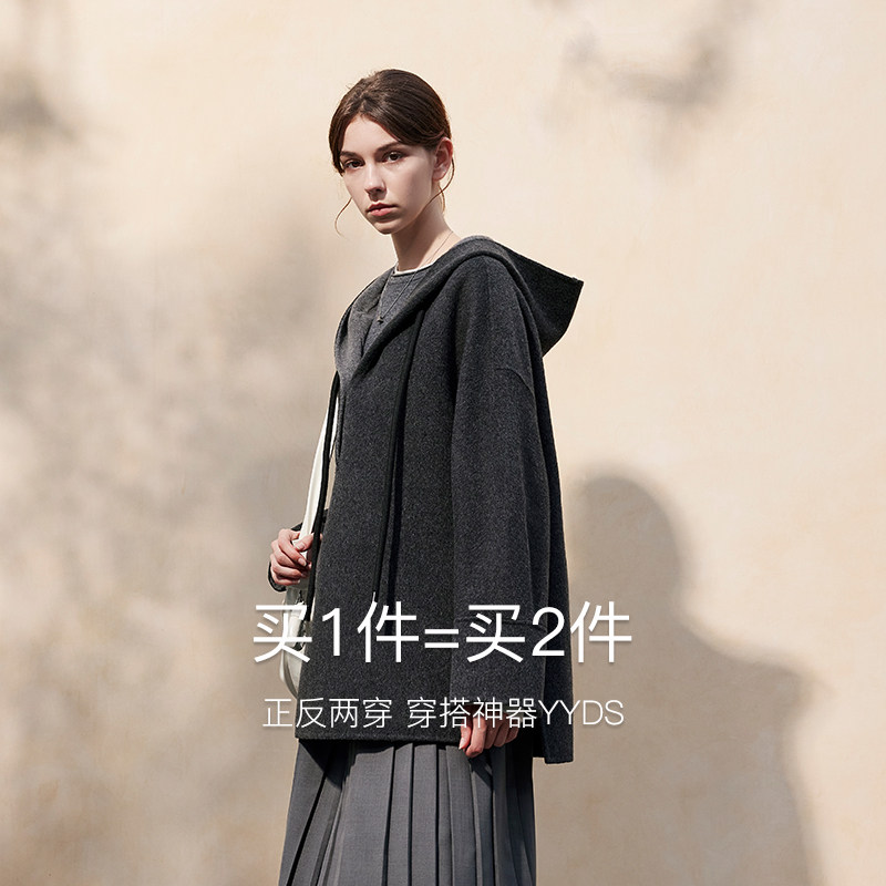 慵懒风双面羊毛大衣女中长款 灰色毛呢外套高级感A