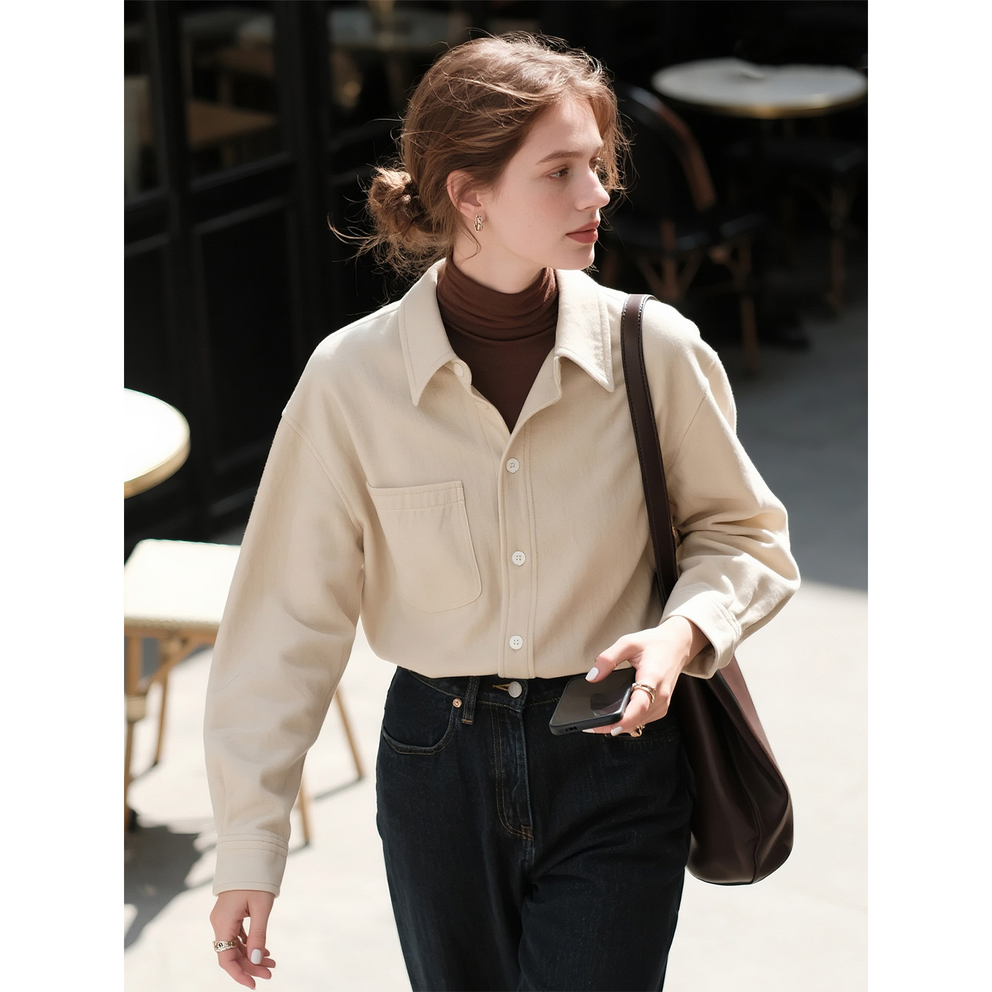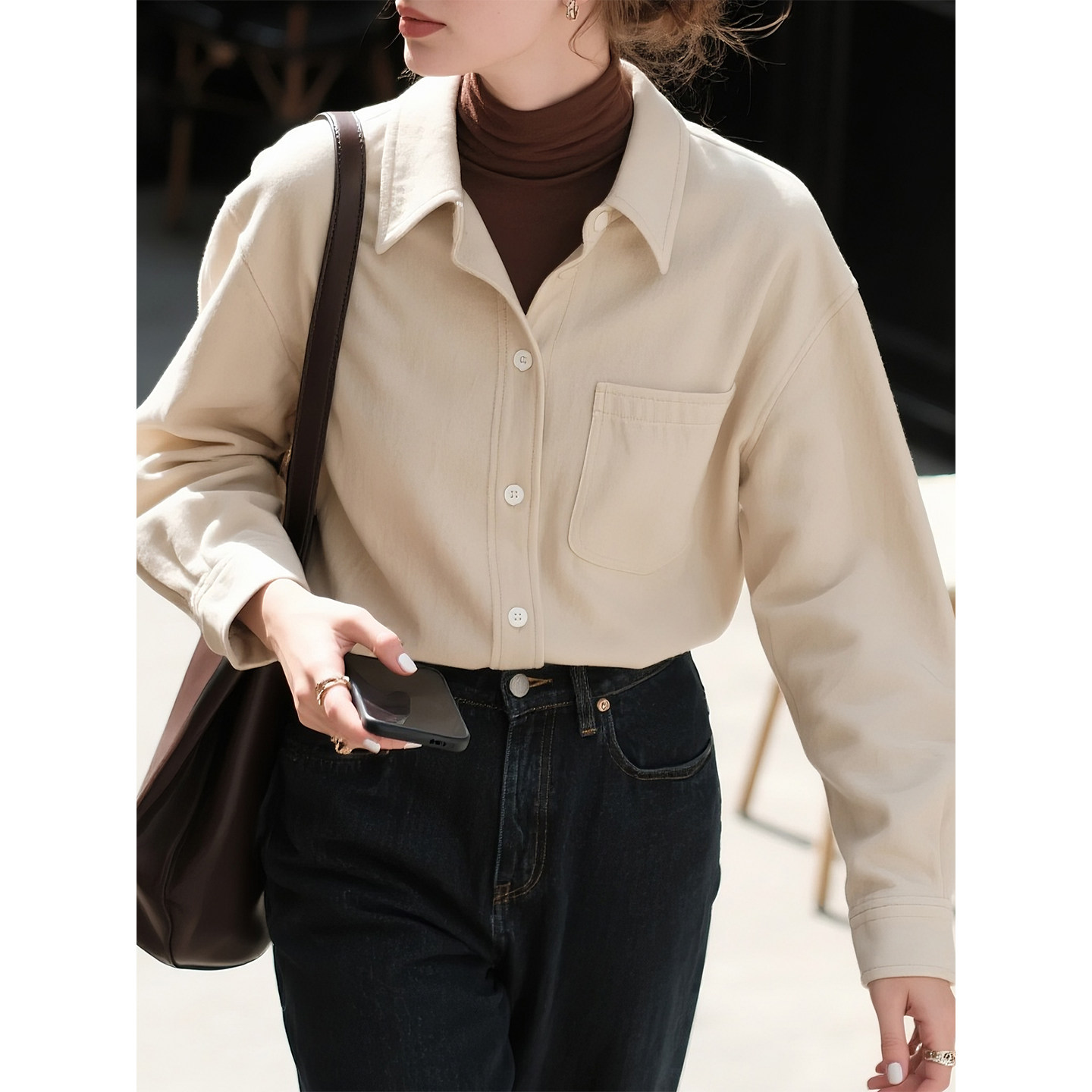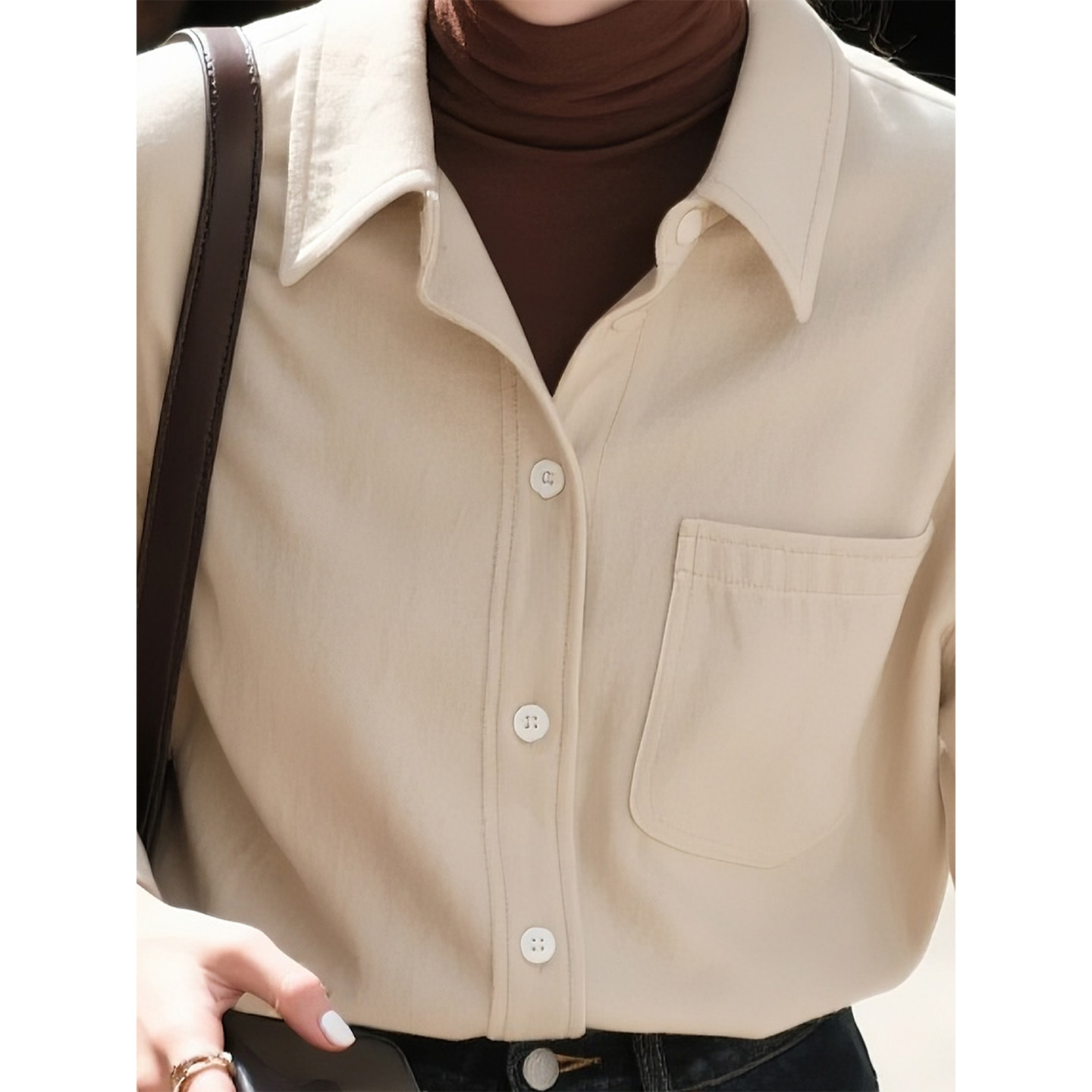 法式 米白色磨毛长袖 新款 女2026年春季 灯芯绒叠穿衬衣显瘦上衣 衬衫
