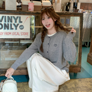 毛衣外套内搭打底上衣 新款 香芋紫色圆领针织开衫 女外搭2026早秋季