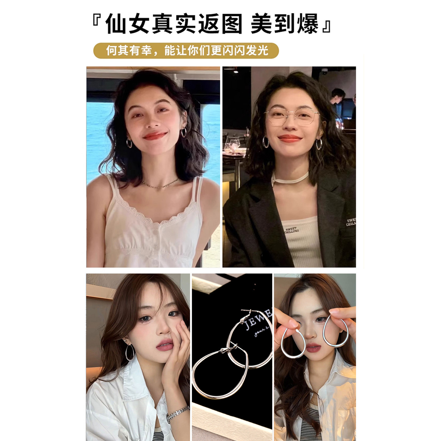 S999纯银耳环耳圈耳骨钉养耳洞耳骨环高级感素圈耳扣耳钉女耳饰男