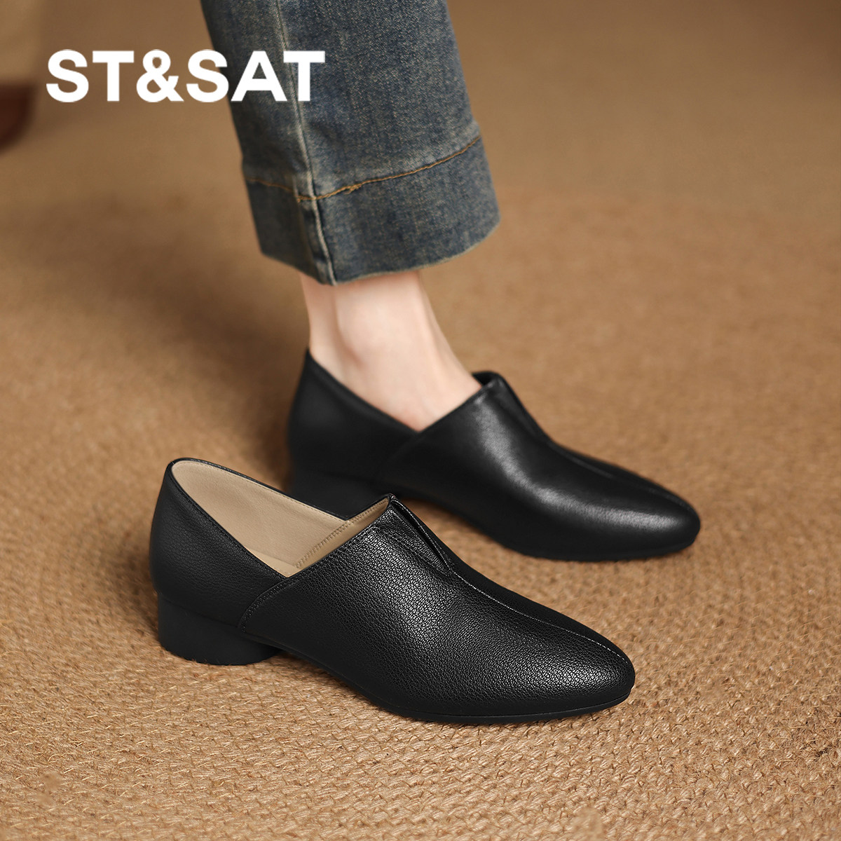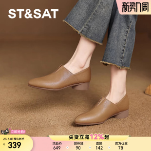 直 春尖头真皮棕色乐福通勤不累脚小皮鞋 星期六羊皮单鞋 女新款