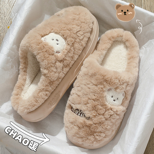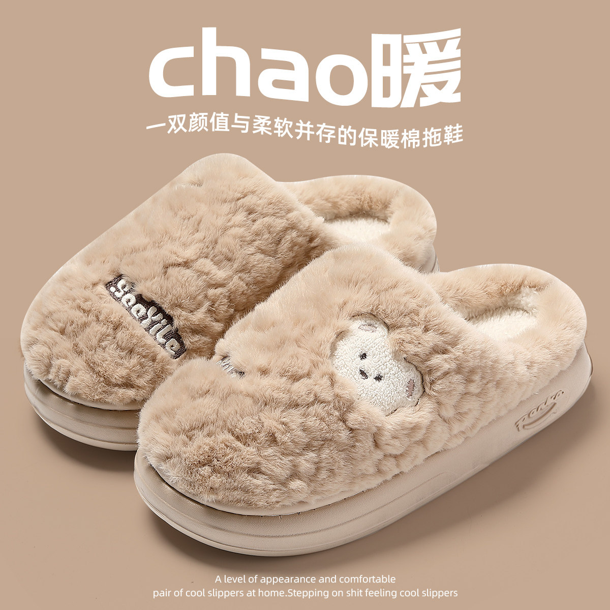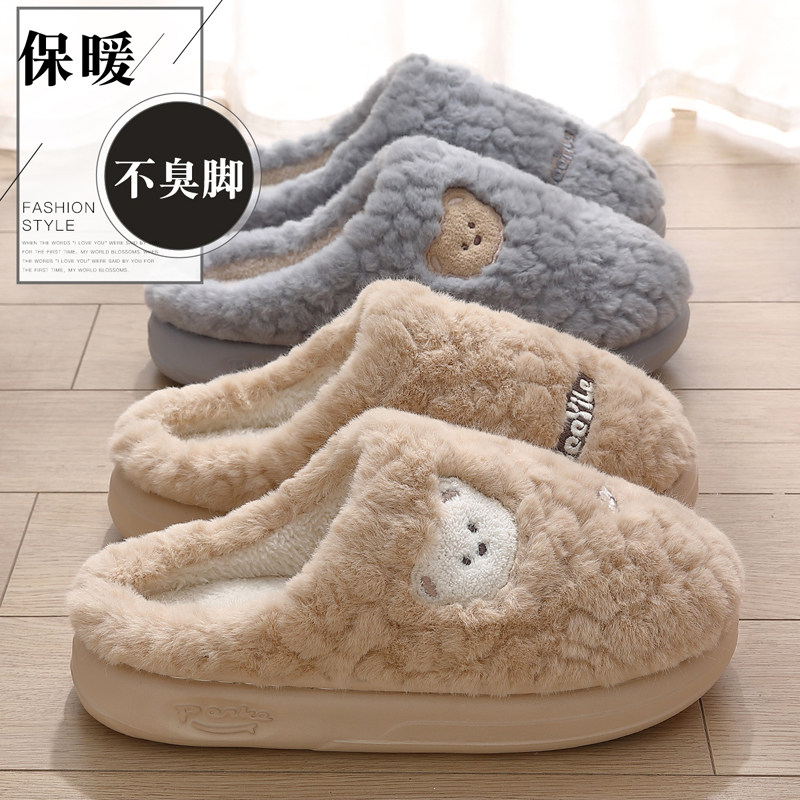 室内家居家防滑厚底踩屎感毛毛绒保暖情侣拖鞋 秋冬季 女 男士 棉拖鞋