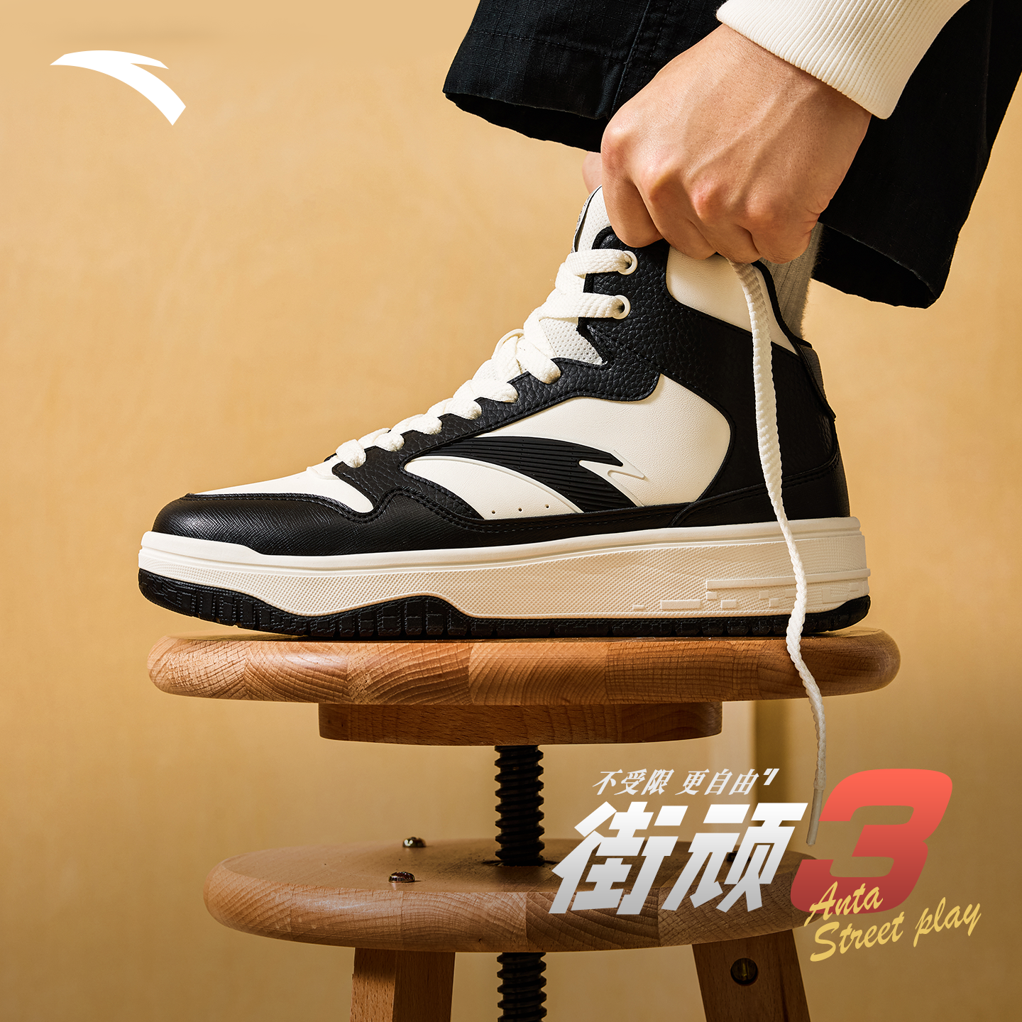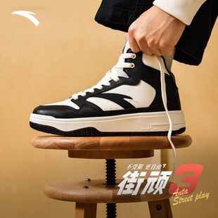 经典 运动鞋 熊猫色高帮板鞋 潮流黑白滑板鞋 男2025秋季 安踏街顽3