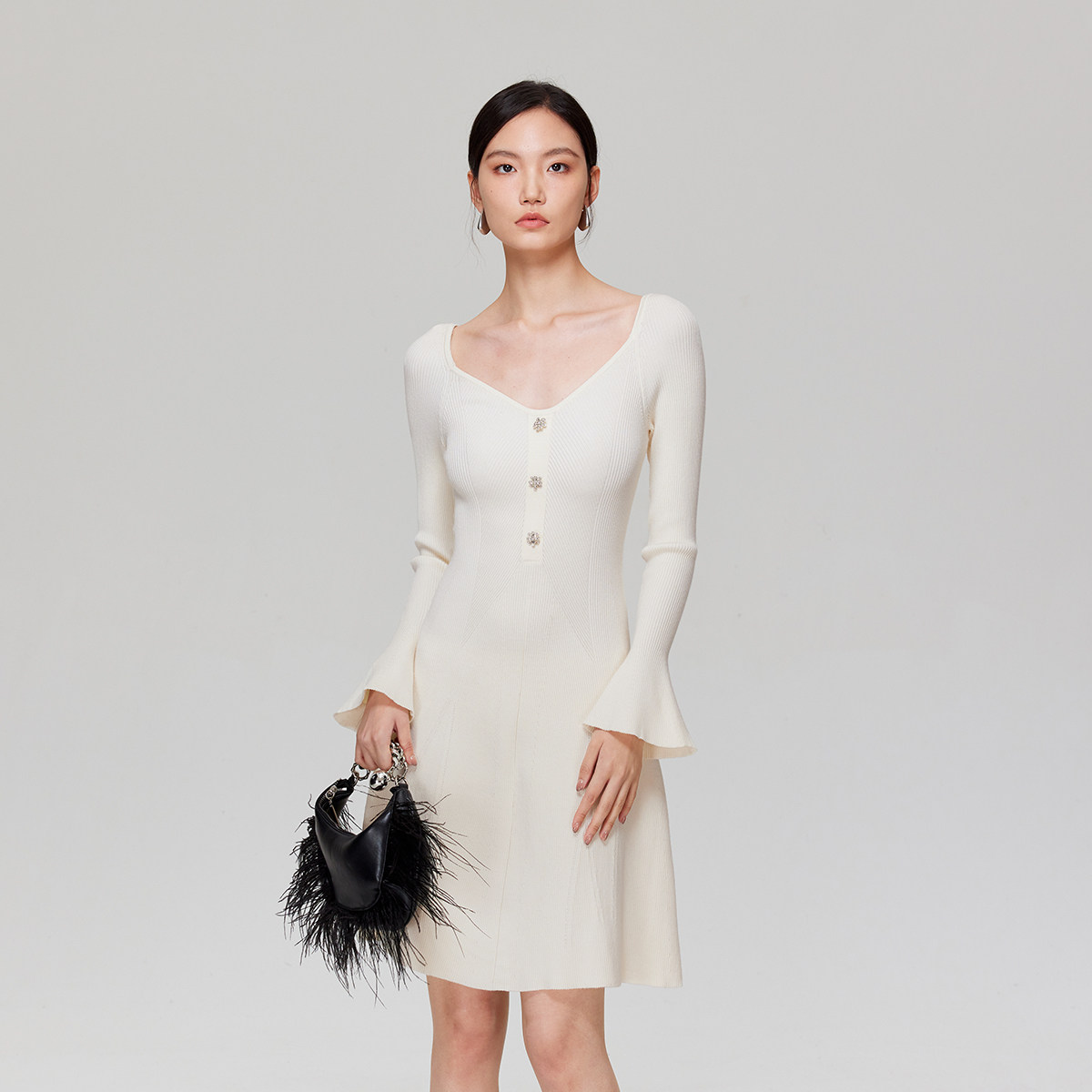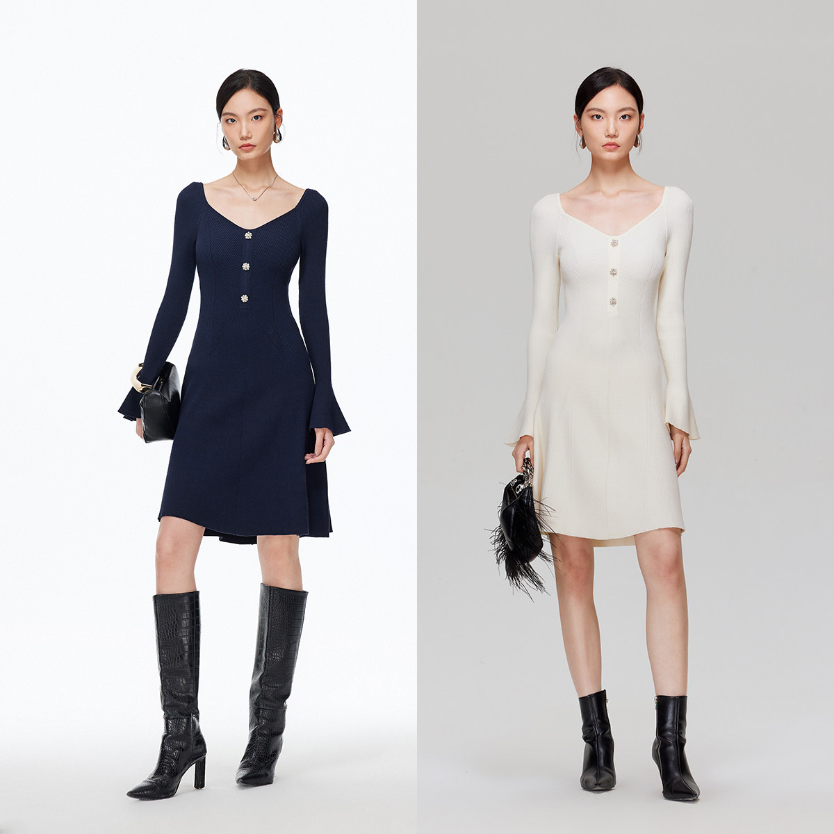 口收腰修身 喇叭袖 A字325446005 Moda连衣裙2025秋冬新款 Vero