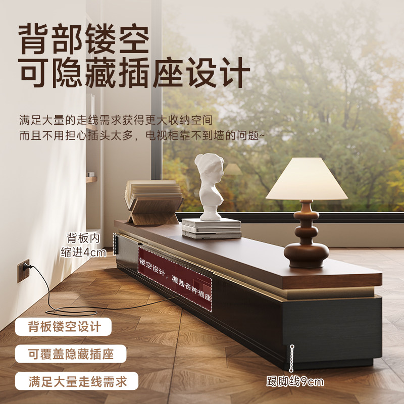 实木电视柜客厅落地地柜小户型多功能收纳储物柜岩板放电视机柜子