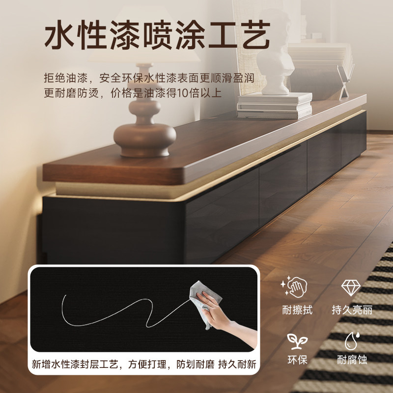 实木岩板茶几客厅家用落地储物柜小户型2025新款 茶几电视机柜组合