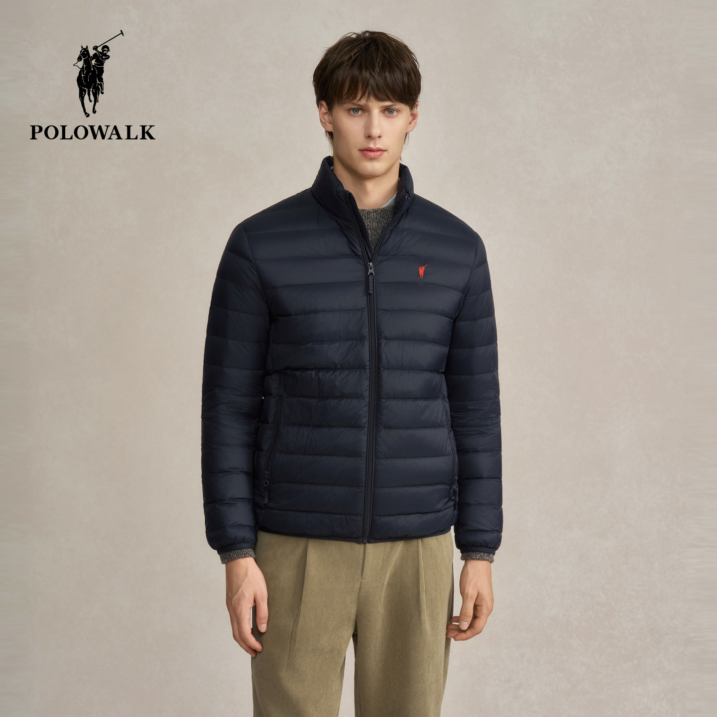 简约百搭保暖立领90鸭绒外套 新品 POLOWALK男式 排骨羽绒服2025冬季