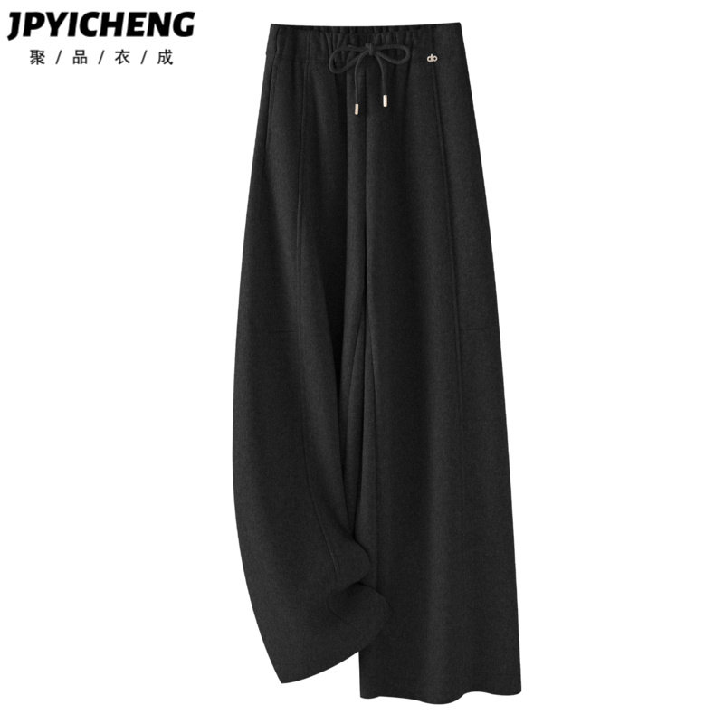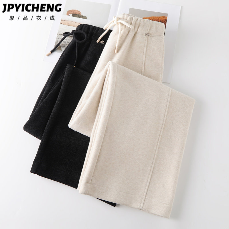 秋冬高腰显瘦宽松慵懒风垂坠感直筒裤 米白色羊绒阔腿裤 女2025新款