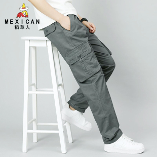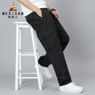 多口袋春季 宽松裤 子大码 稻草人男士 户外直筒长裤 裤 休闲裤 纯棉工装