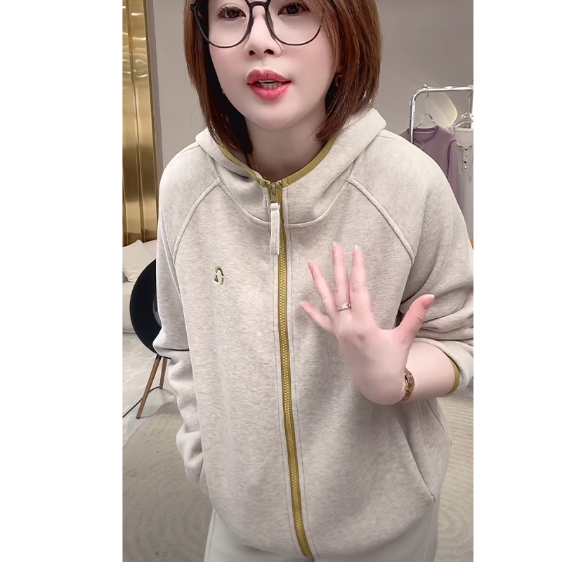 欧货加绒加厚撞色连帽开衫 休闲简约显瘦防风外套 女2025年秋冬新款