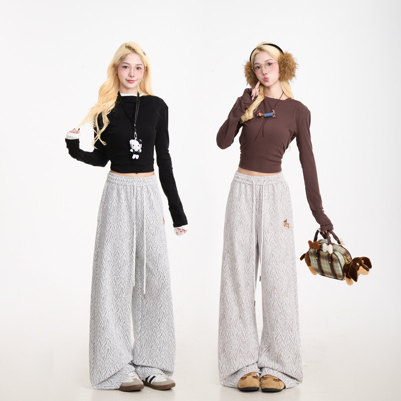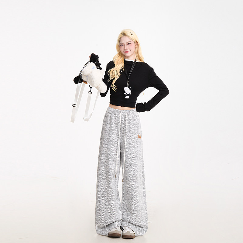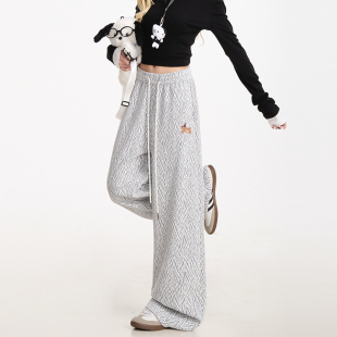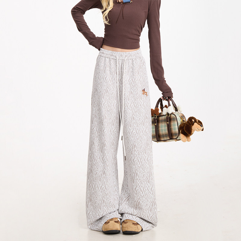 小众阔腿休闲裤 潮牌宽松直筒裤 女美式 NERESUM小香风人字纹卫裤