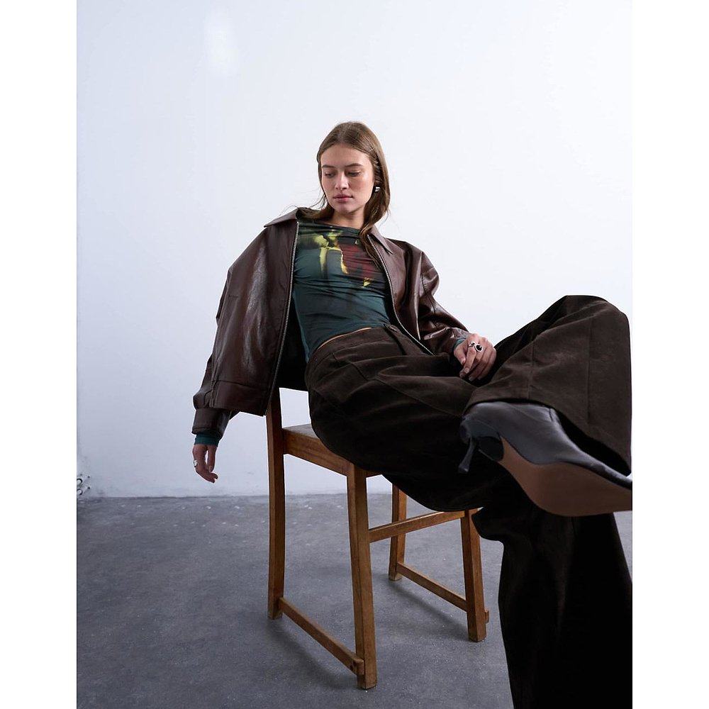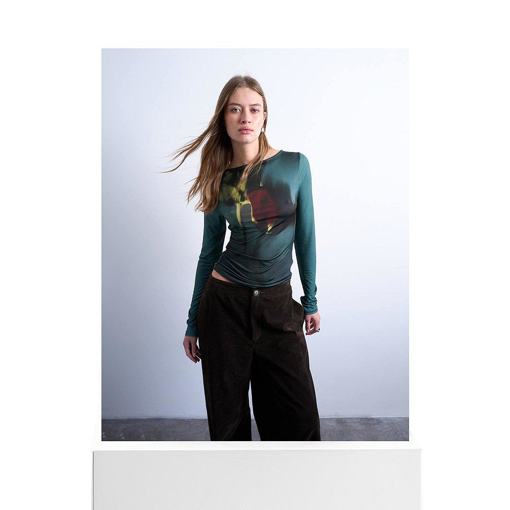 tulip 1h可退 女士 Topshop 细纤维高领印花绿色上 香港直邮潮奢