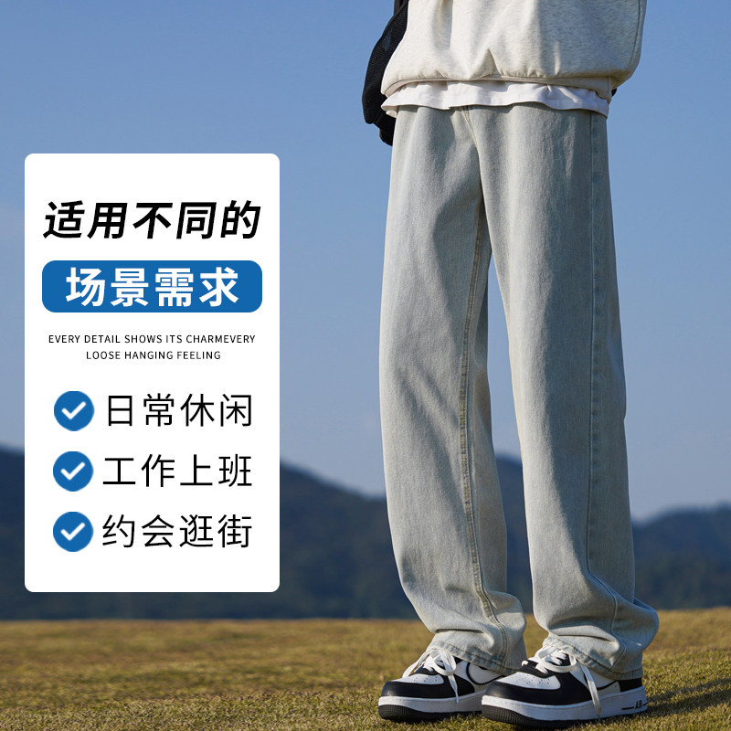 男士 子男款 秋冬季 宽松直筒男生休闲阔腿裤 2025新款 罗蒙加绒牛仔裤