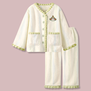 加厚珊瑚绒学生家居服套装 冬季 法兰绒睡衣女卡通2024年新款 秋冬款