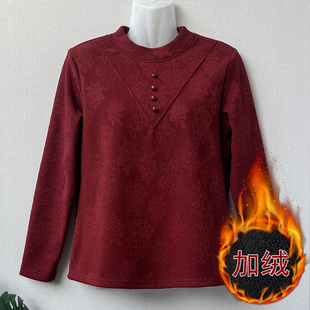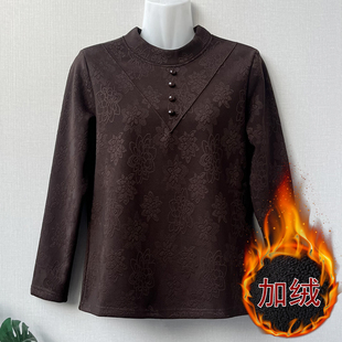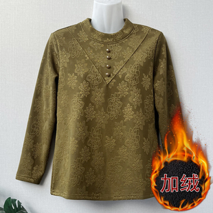 上衣 宽松遮肉中领保暖弹力长袖 妈妈秋冬加绒打底衫 女中老年人大码