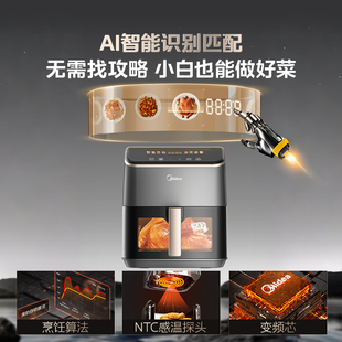 美 空气炸锅电炸锅家用智能大容量可视免翻面多功能下拉详情优惠