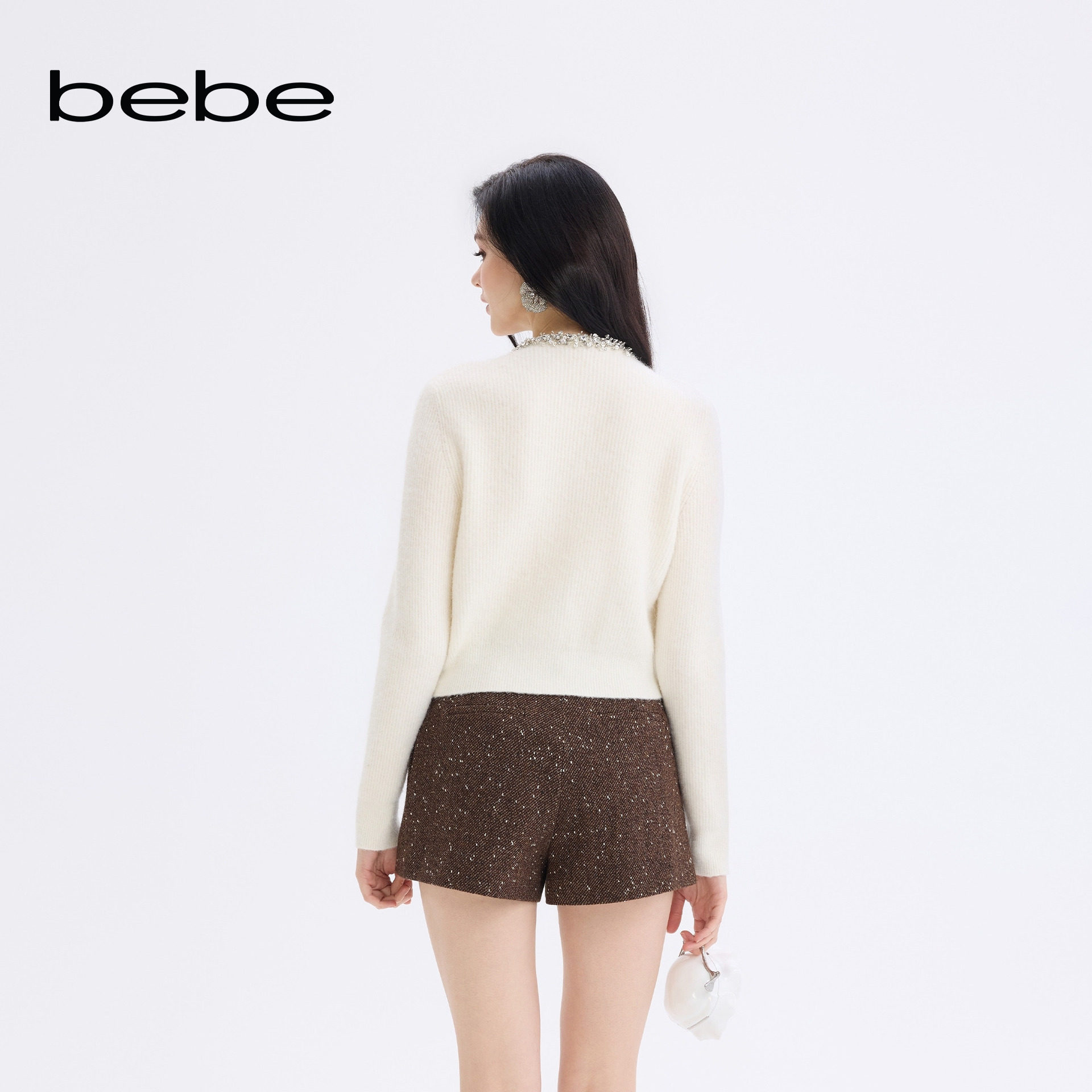 bebe2025秋冬女士千金风含羊毛羊驼毛针织开衫 430610