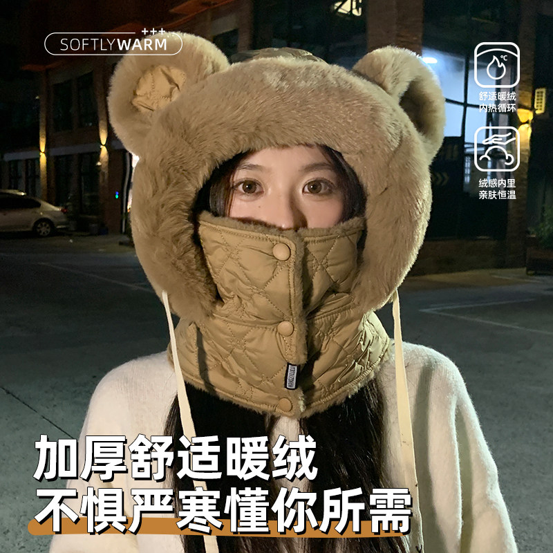 帽子女冬防风骑行防寒装 备加绒厚头套保暖雷锋帽男东北棉帽子骑车