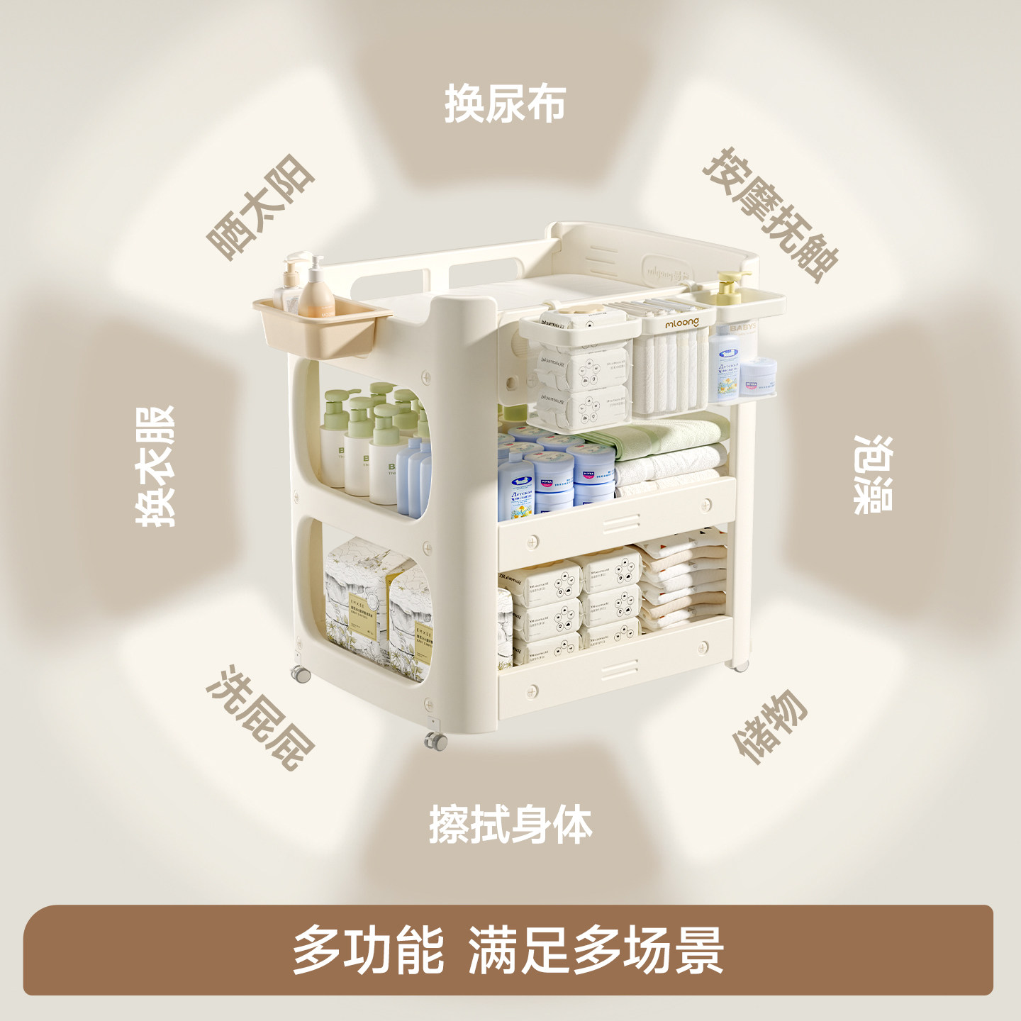 曼龙婴儿尿布台多功能宝宝抚触护理台换尿布可移动新生儿婴儿床
