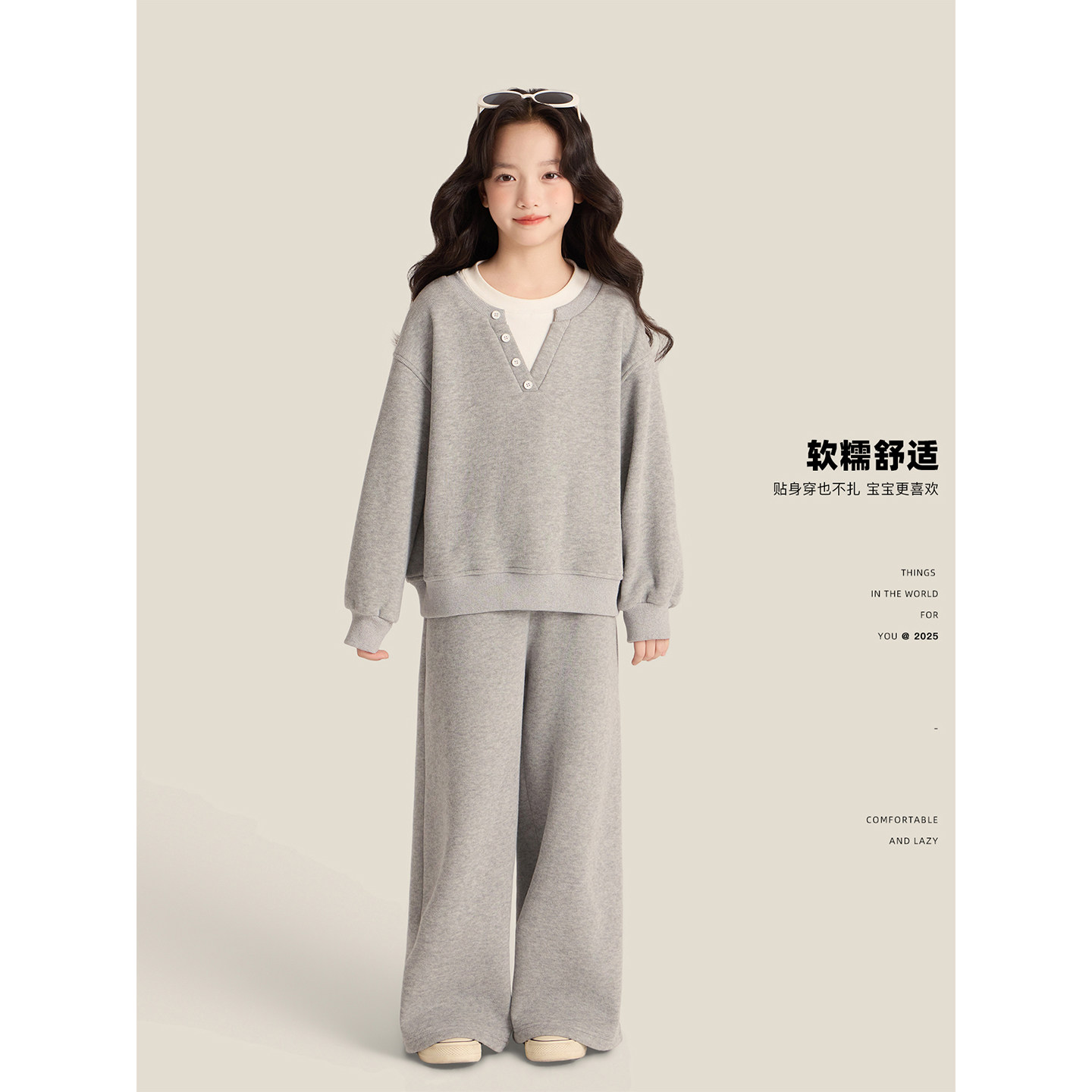 长裤 Amybaby女童裤 百搭休闲加绒加厚宽松阔腿裤 2025新款 子冬季