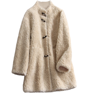 毛绒外套N851 仿生羊毛丰盈暖绒宽松H廓形加厚皮草长袖 10℃御寒