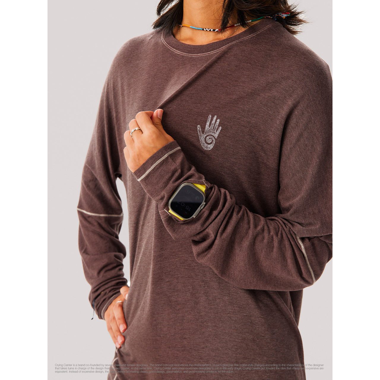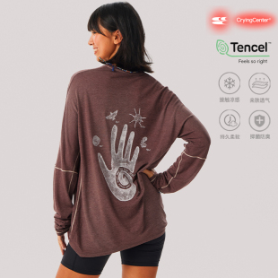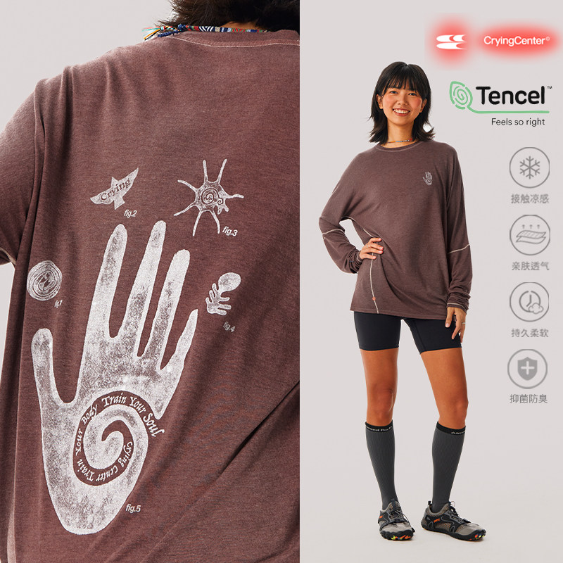 CryingCenter天丝羊毛炒染手工海洋部落训练掌印合身长袖 宽松T恤