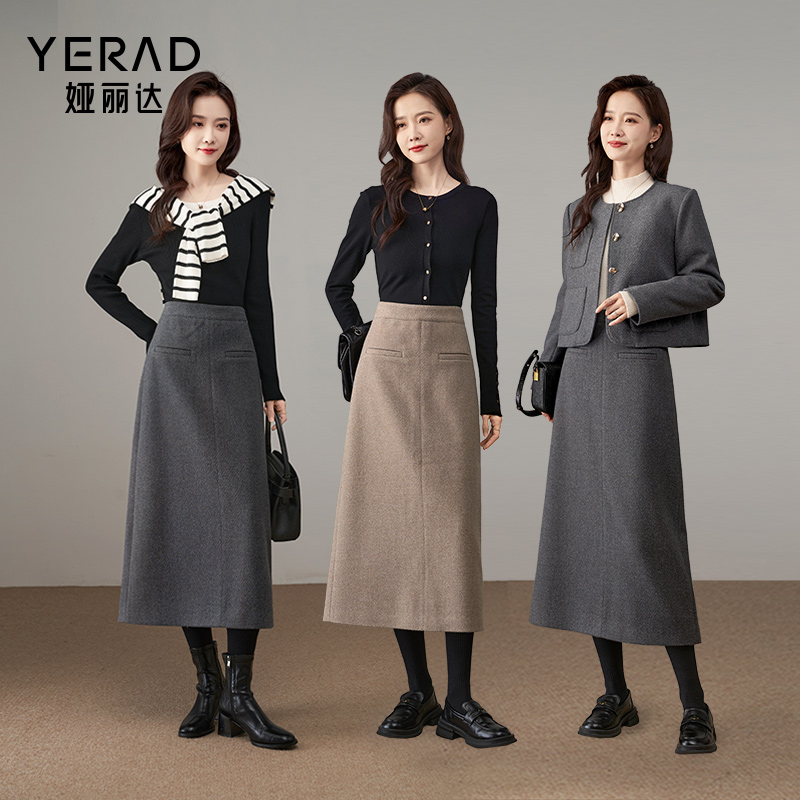 娅丽达仿毛呢半身裙女冬直筒裙百褶伞裙 衣橱直播间 所有女生