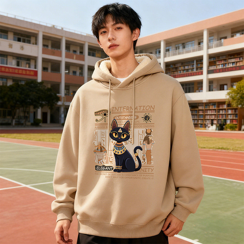 纯色保暖帽衫 潮牌cleanfit短款 连帽卫衣男美式 340G重磅加绒弯刀袖