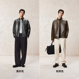 羽绒服水洗PU立领宽松帅气机车风休闲外套 新款 杰克琼斯男装 冬季