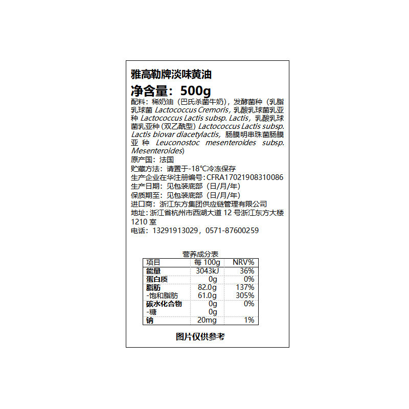 雅高勒淡味草饲发酵黄油 法国原装 Gall 黄金奶源 进口