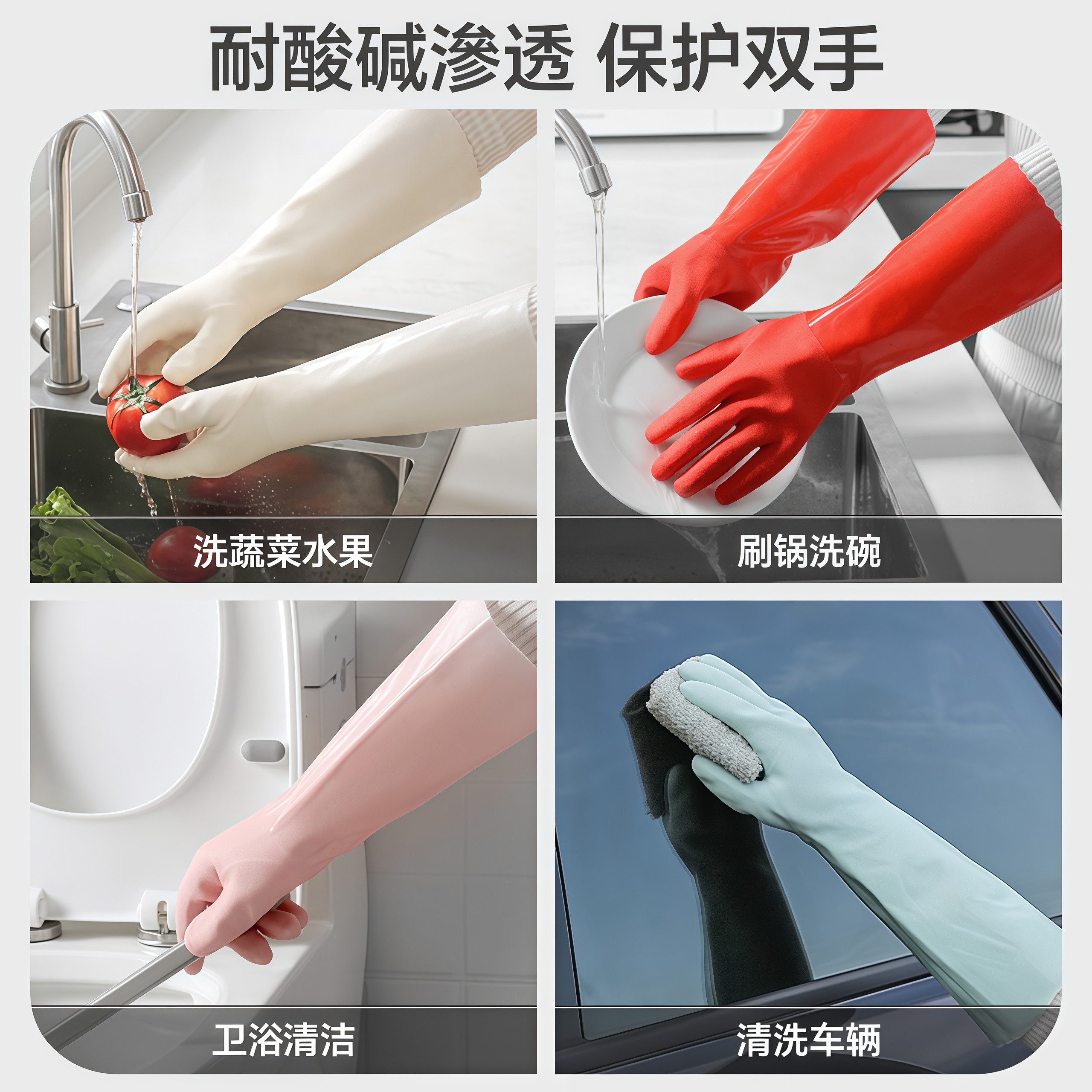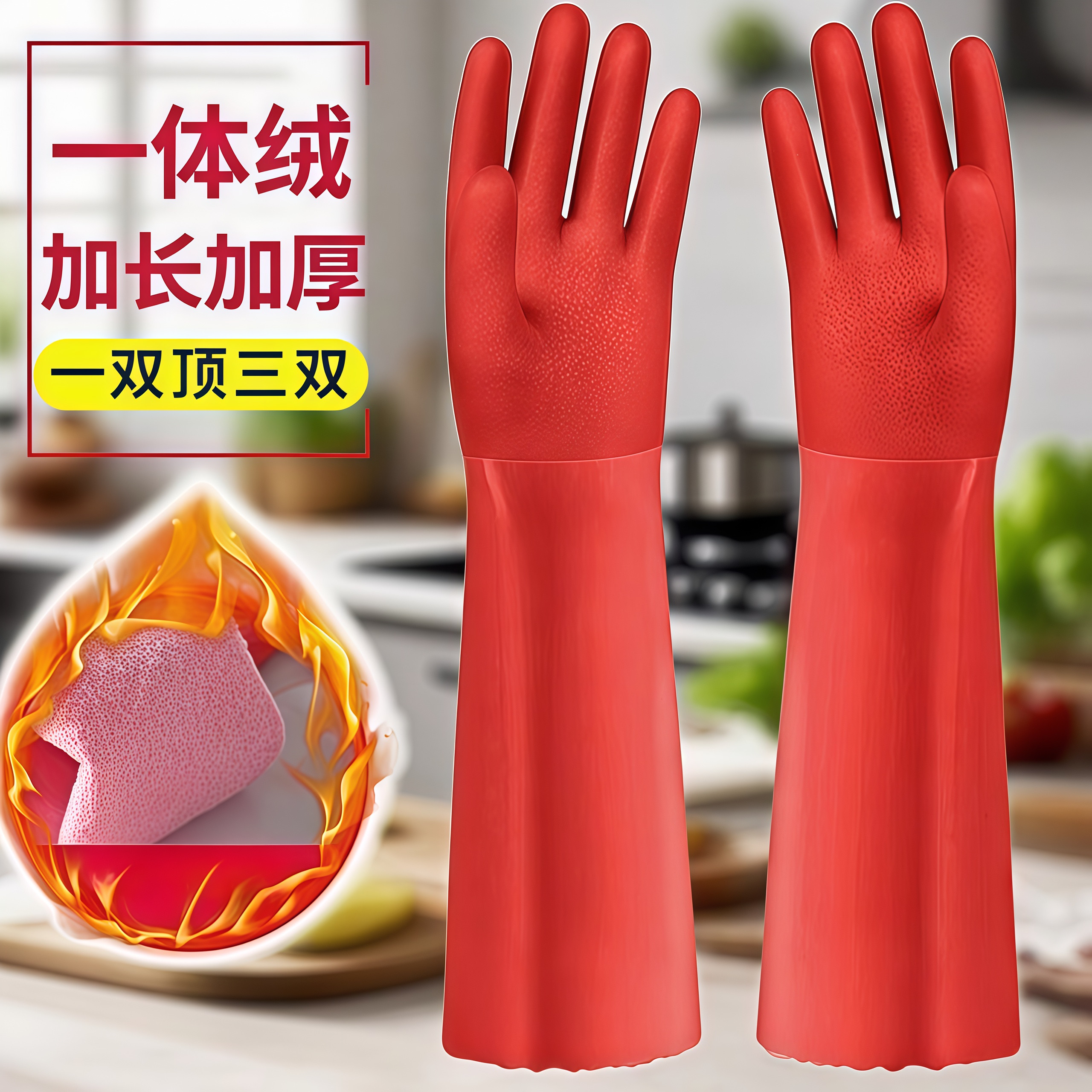 洗碗加绒手套男女厨房保暖款 加厚耐用橡胶乳胶皮洗衣加长手套家务