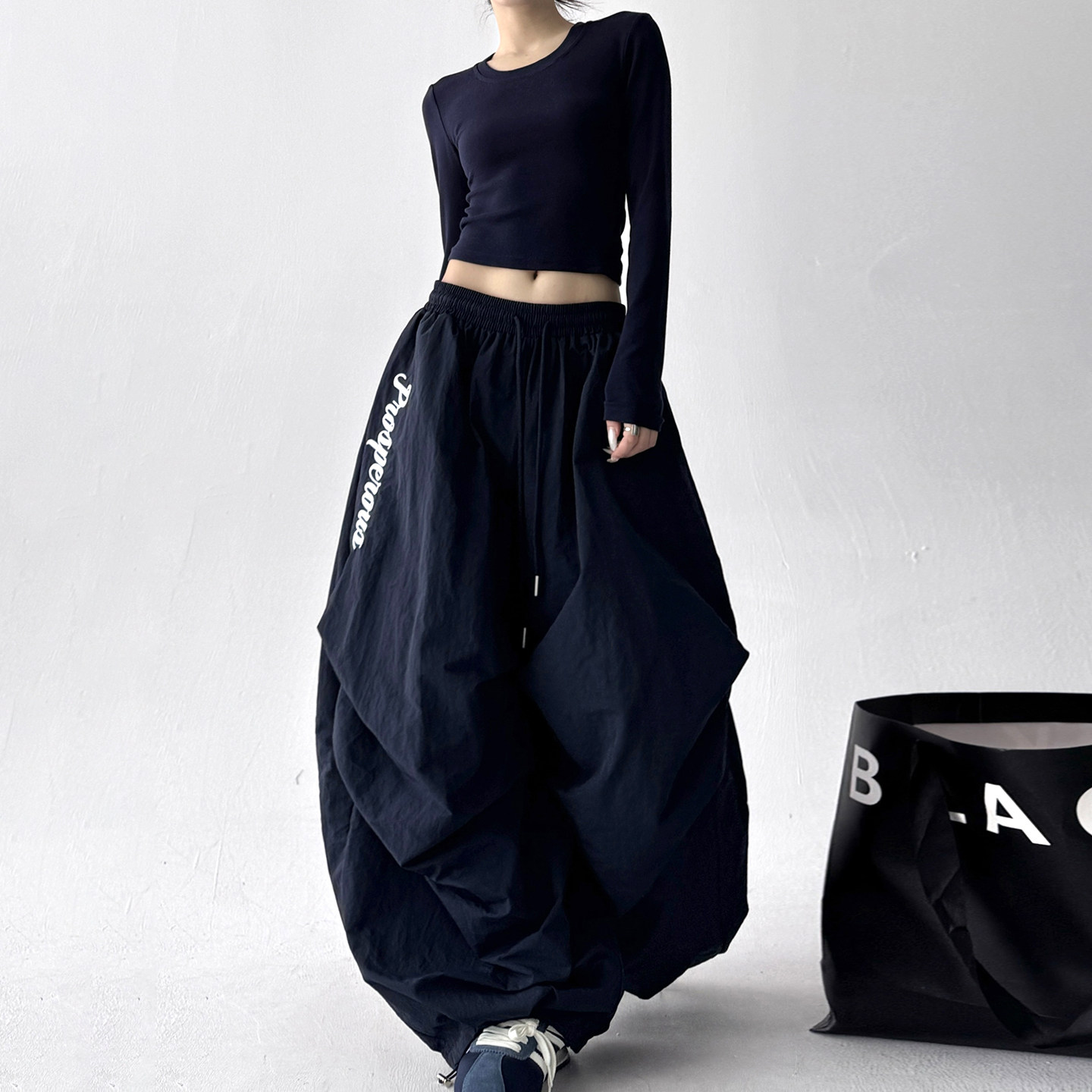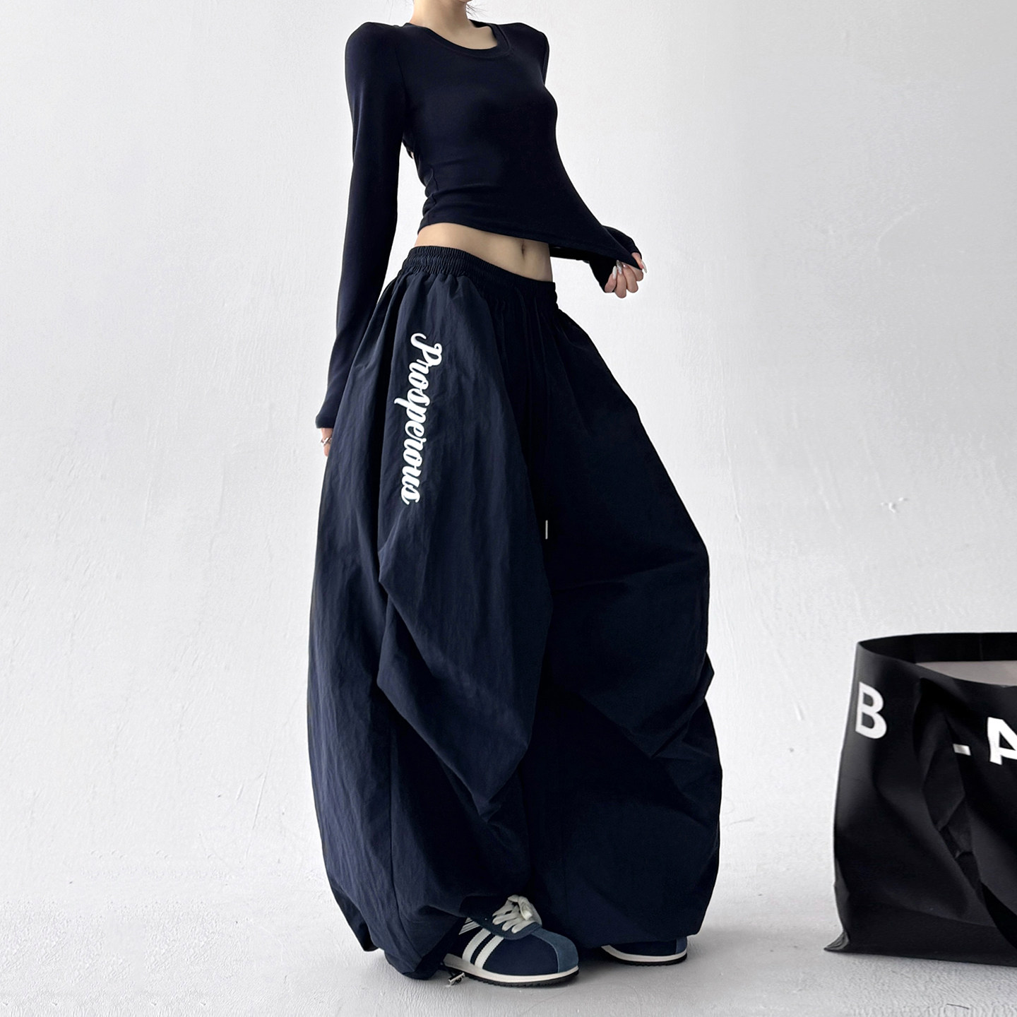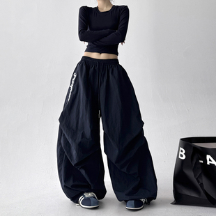 裤 2025冬季 女加厚加绒高个子宽松阔腿滑雪裤 设计感褶皱伞兵裤 新款