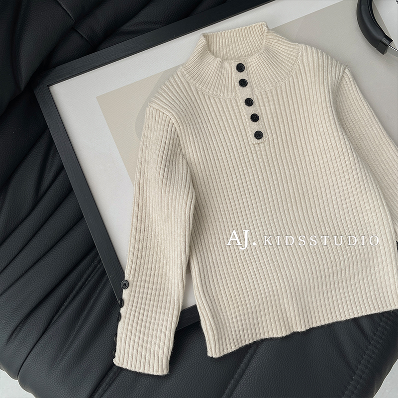 撞色纽扣装 男女童韩版 秋冬装 饰百搭休闲毛衣上衣HCXZ4654 泰酷