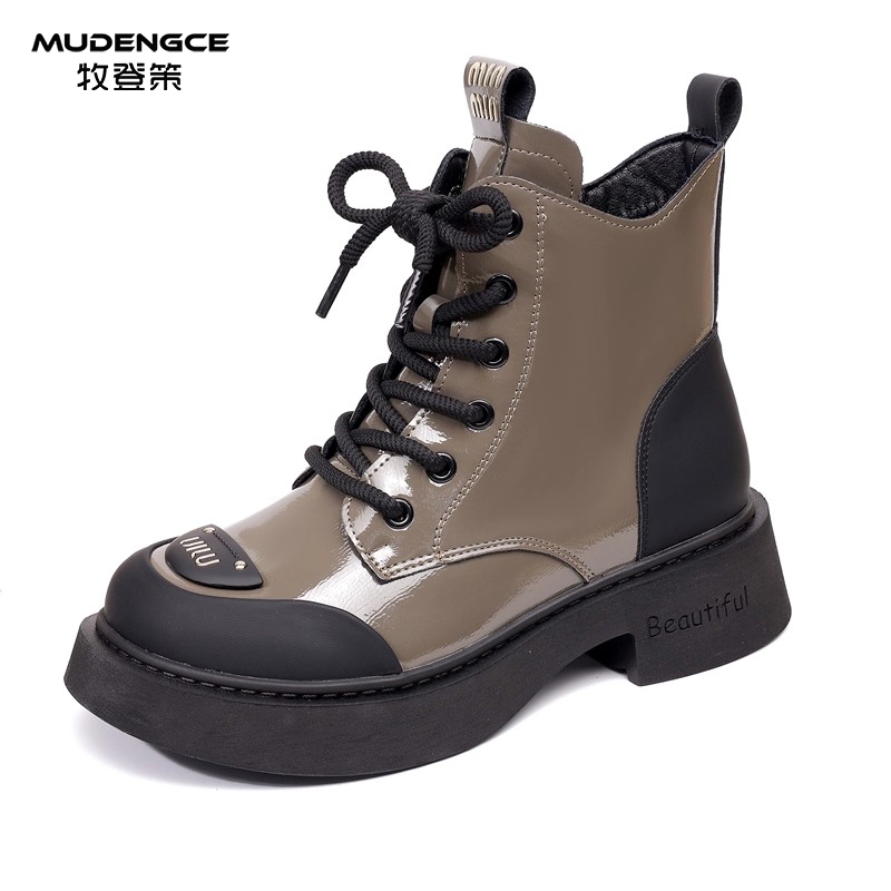 真皮 两穿厚底增高百搭中筒短靴 骄屿美拉德棕色马丁靴女2025新款