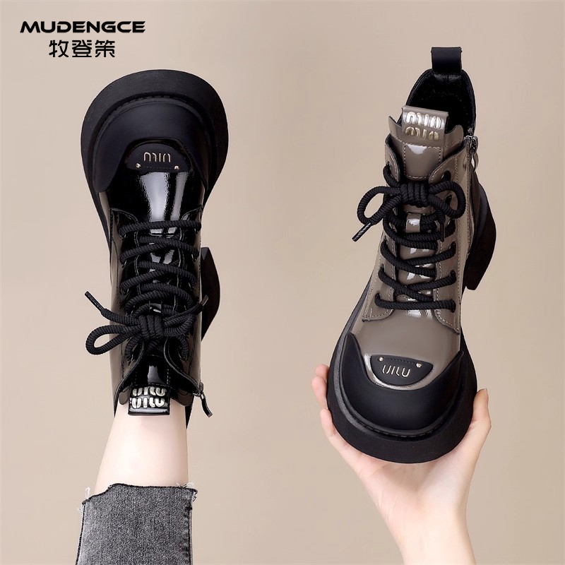 靴子女鞋 增高厚底短靴百搭工装 子 新款 热风黑色马丁靴女2025年冬季