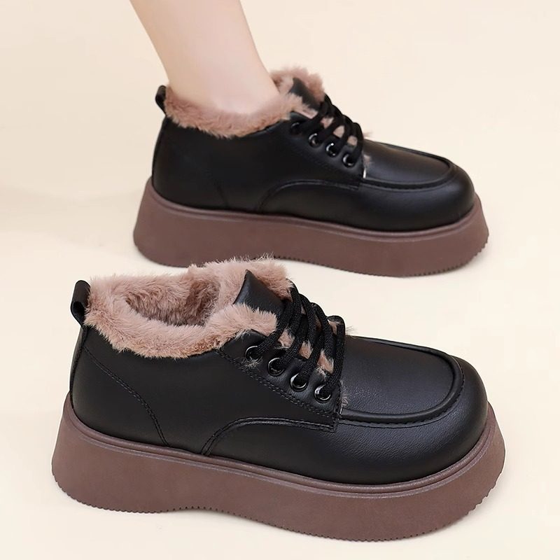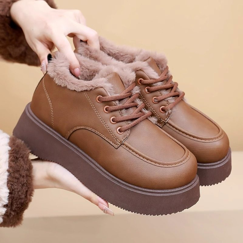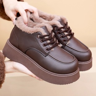 小皮靴加厚保暖防滑厚底雪地靴女 皮面加绒时尚 2025冬季 老北京棉鞋
