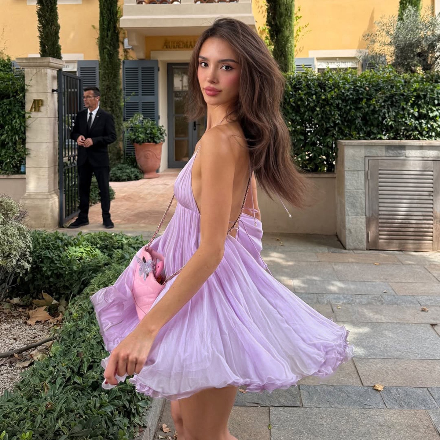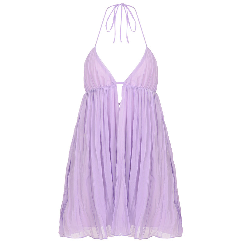 辣妹露背短裙 香芋紫低胸性感A摆吊带连衣裙 ROCKMORE 超仙氛围