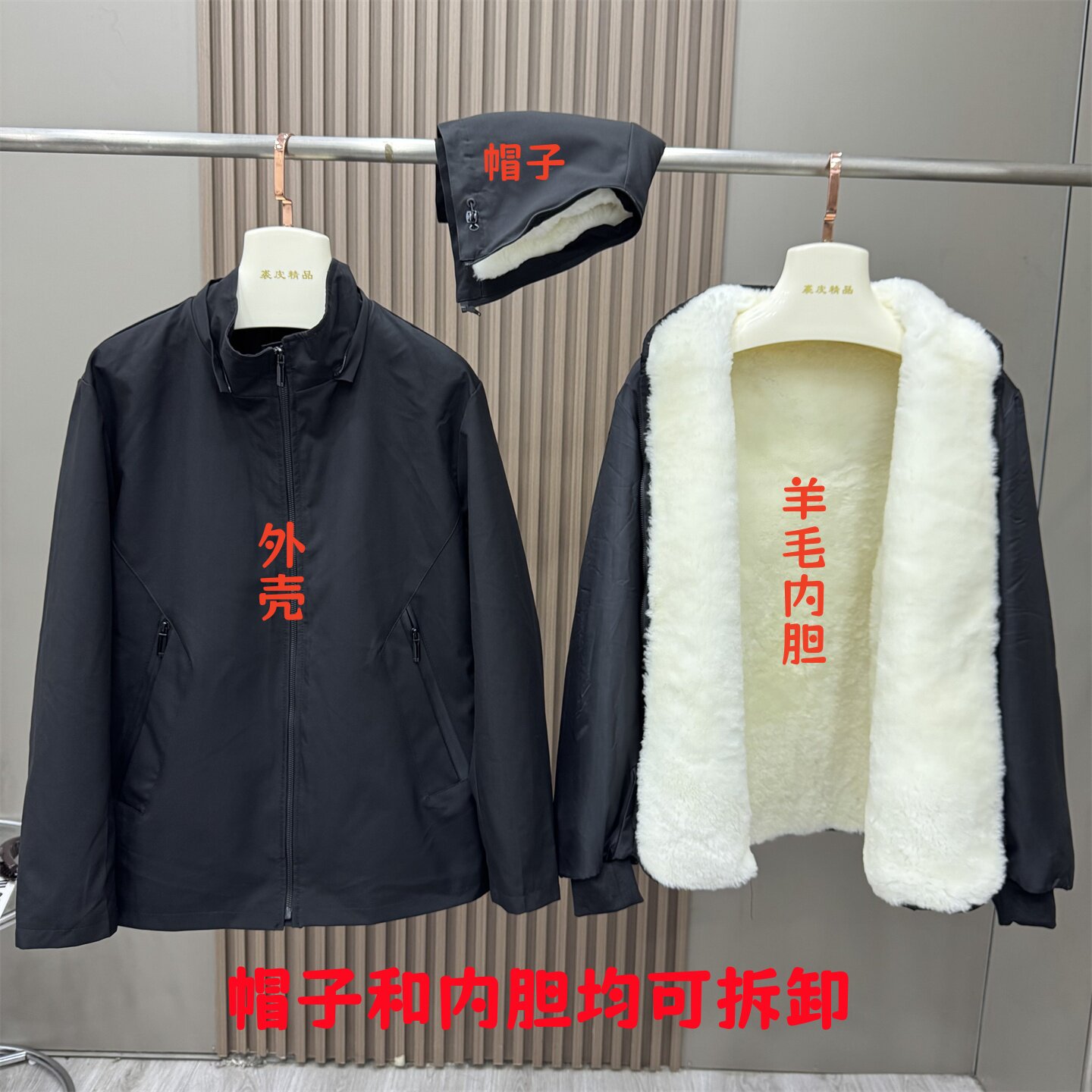 羊皮袄男皮毛一体冬季 派克服棉服 加厚羊毛外套活里活面中老年男士