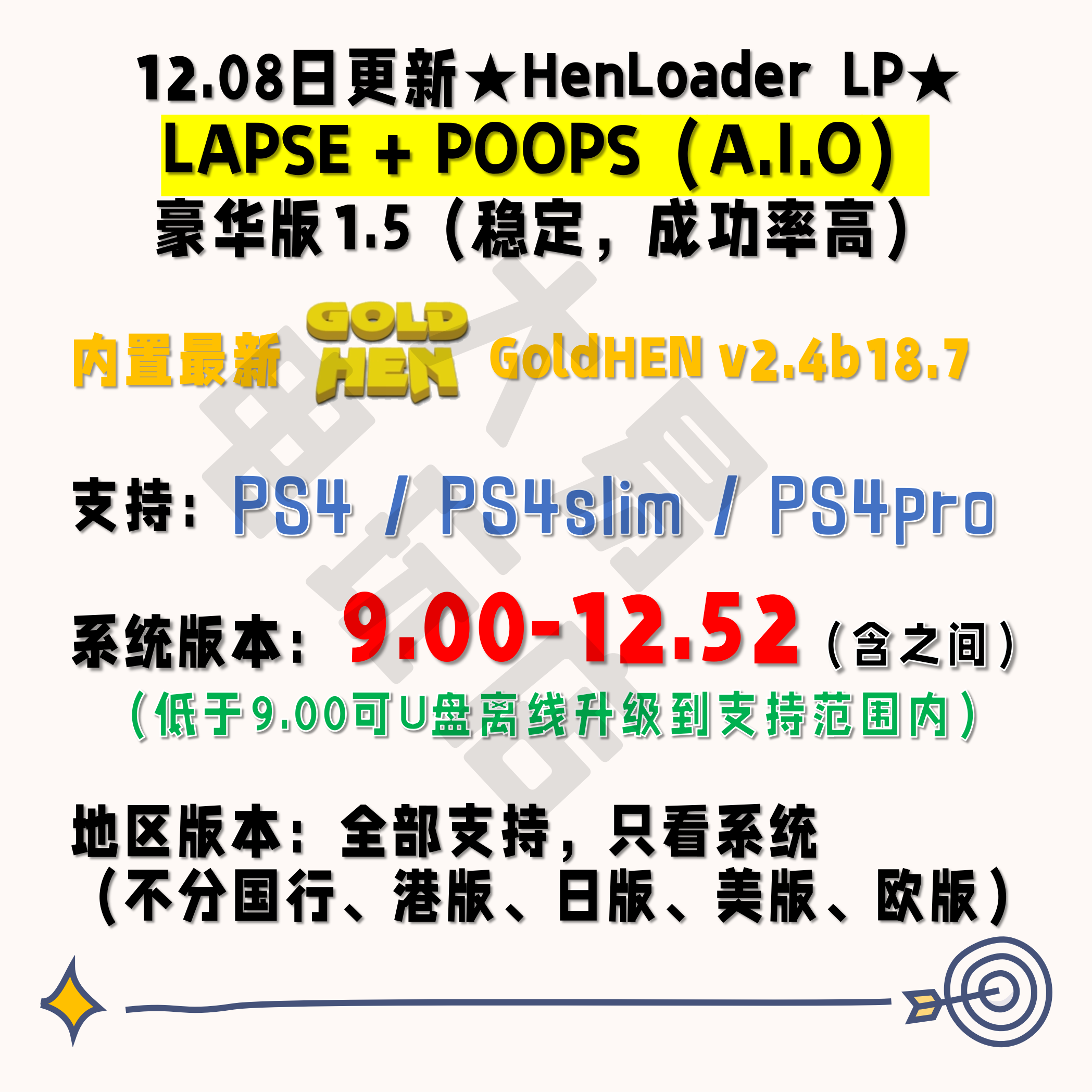 poops内置goldhen18.7支持9.00 pro折腾光盘Lapse 12.52 slim PS4